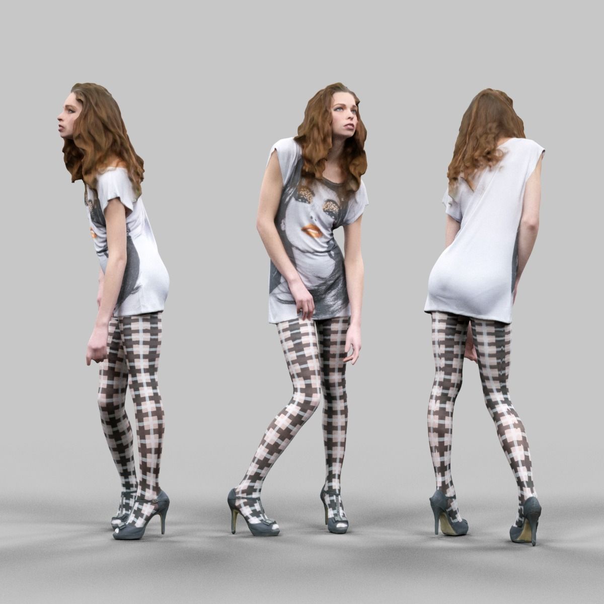 Girl in cross panties and shirt with portrait Low-poly 3D model