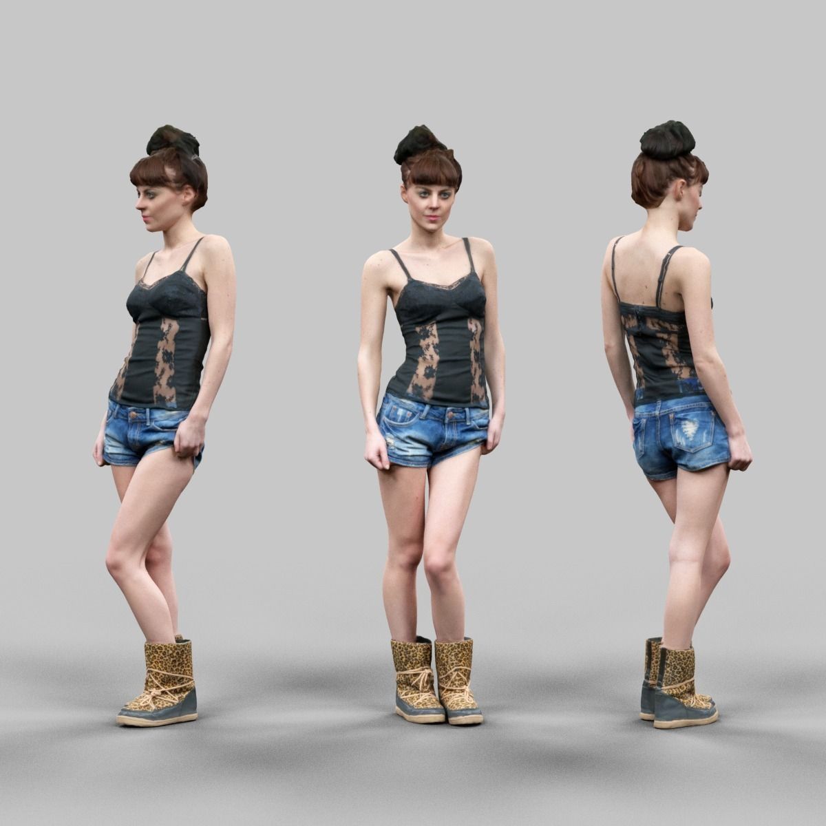 Girl in sexy top jeans short and tigerboots posing sexy 3D Model