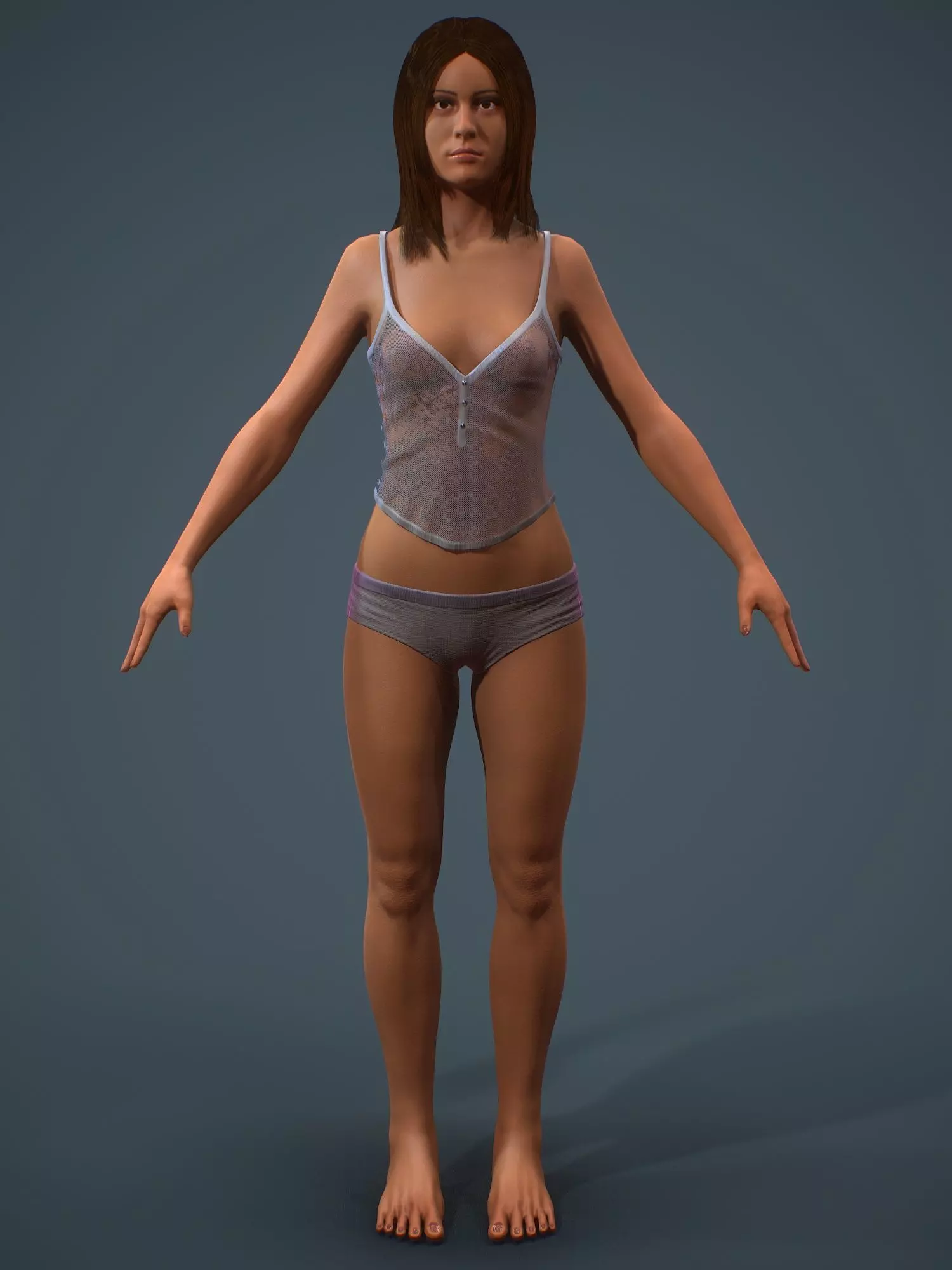 Girl in underwear real-time, games, augmented reality, virtual reality 3D Model. Rendered in marmoset toolbag 3.05.