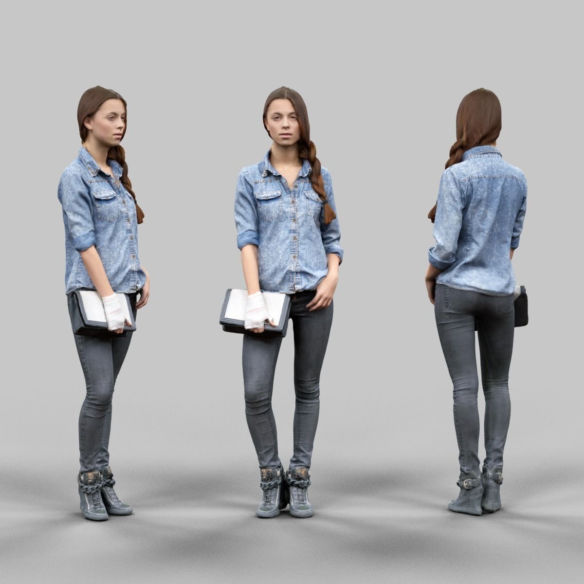 Girl wearing jeans shirt and black trousers Low-poly 3D model