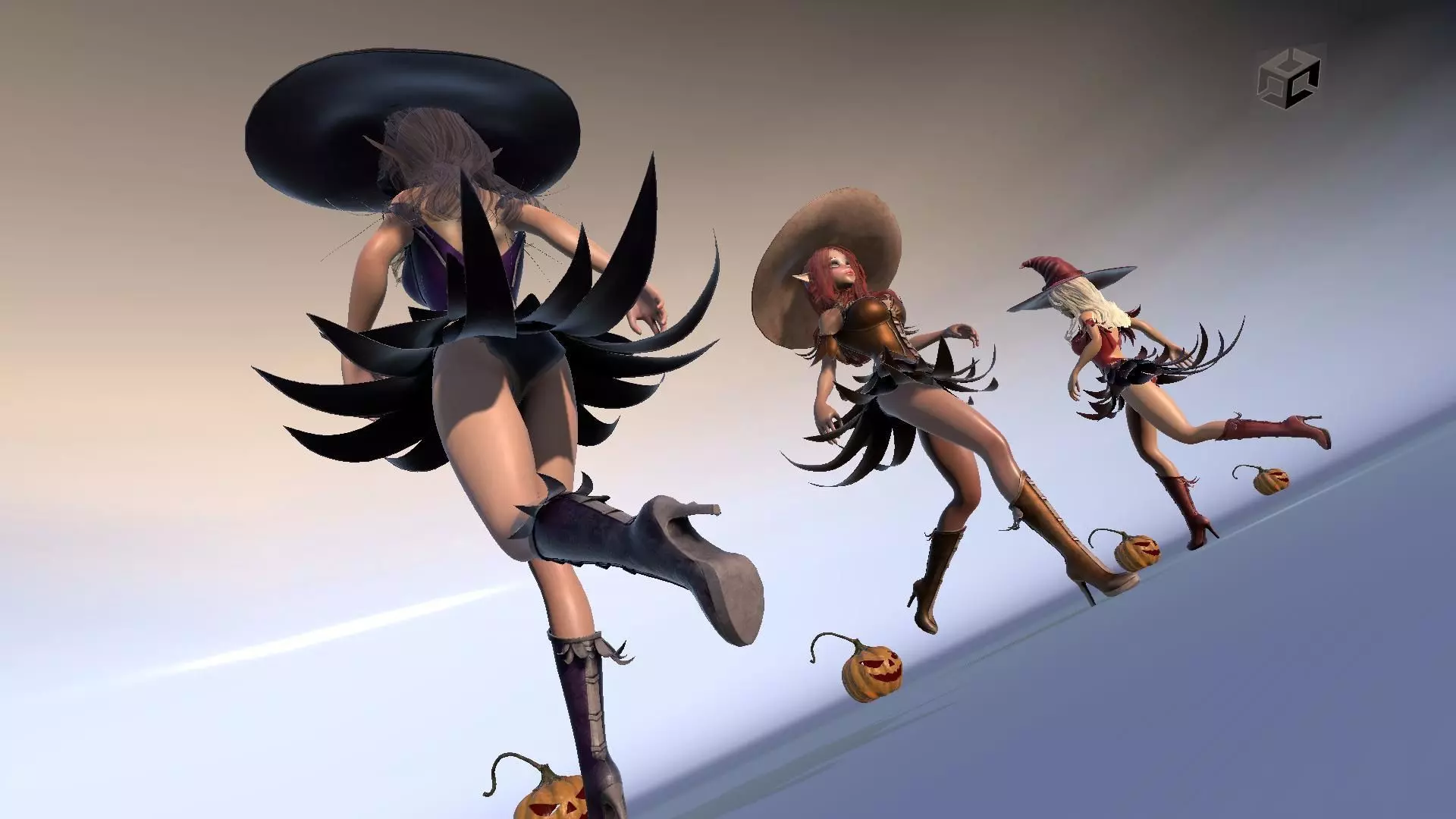 Game 3D Character Halloween Gerl.Low-poly model with animation.The model is available in three colours - purple, red and orange.The set includes a highpoly model.