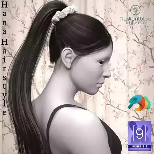 Hana Ponytail for Genesis 9Bring a touch of elegance and versatility to your characters with the Hana Ponytail. Specifically designed for Genesis 9, this high-quality hair asset features a long, flowing ponytail secured by a stylish, textured scrunchie.
