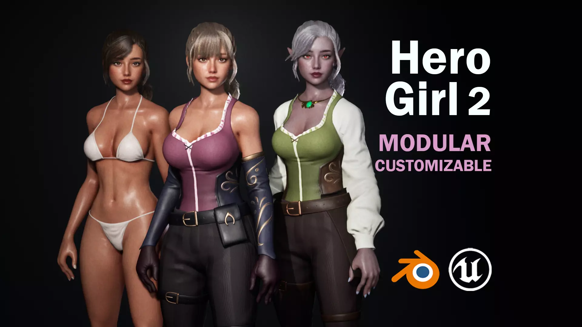 ***PBR,* Modular Character for Blender and Unreal Engine, with Armour, Underwear, and Nude versions. **