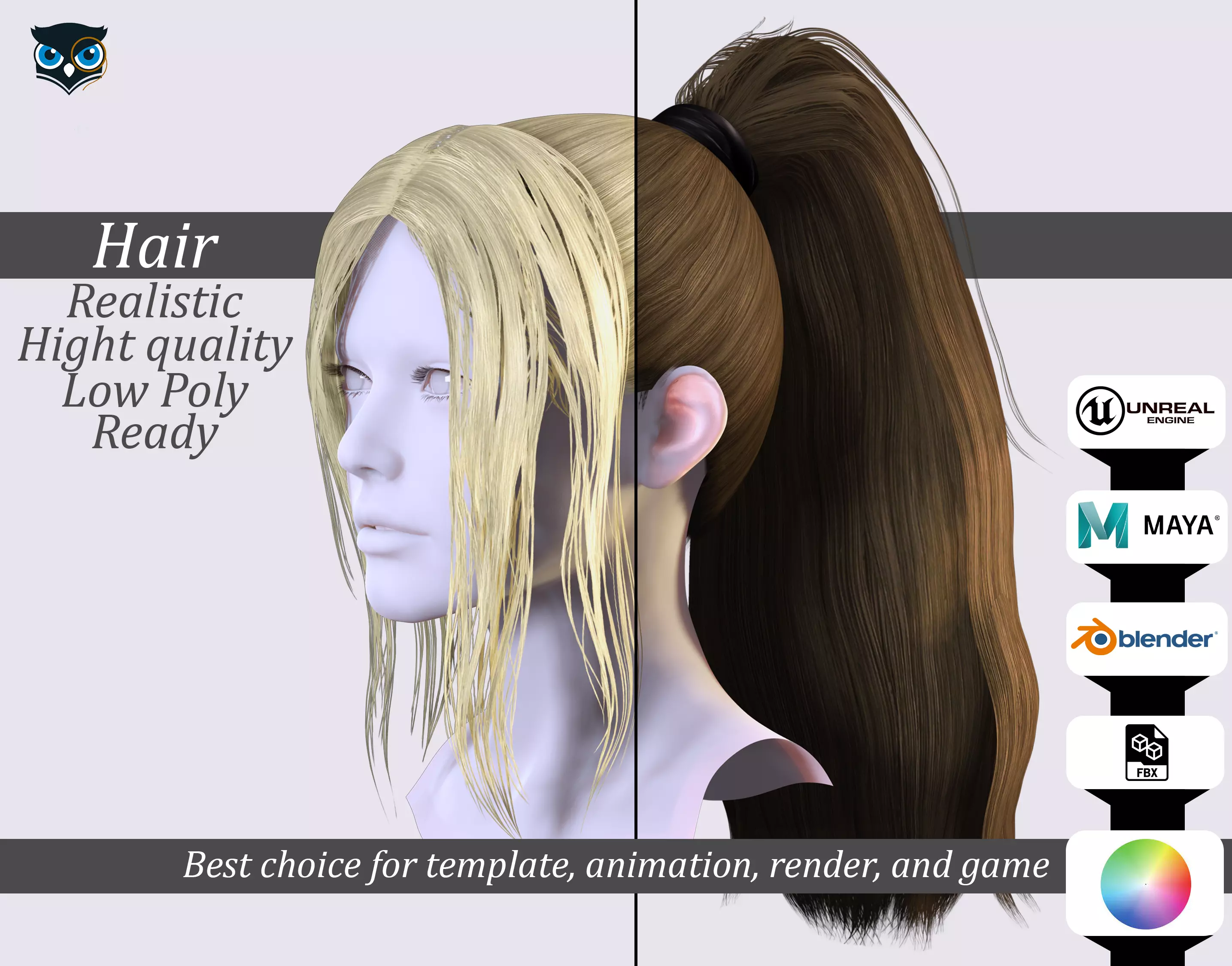 Whether you're a game developer, animator, or simply looking for a high-quality hair model, this product is perfect for you. Its low-poly design ensures optimal performance, and it's ready for use in both real-time games and high-quality rendering applications. So why wait? Download this model today and take your projects to the next level!