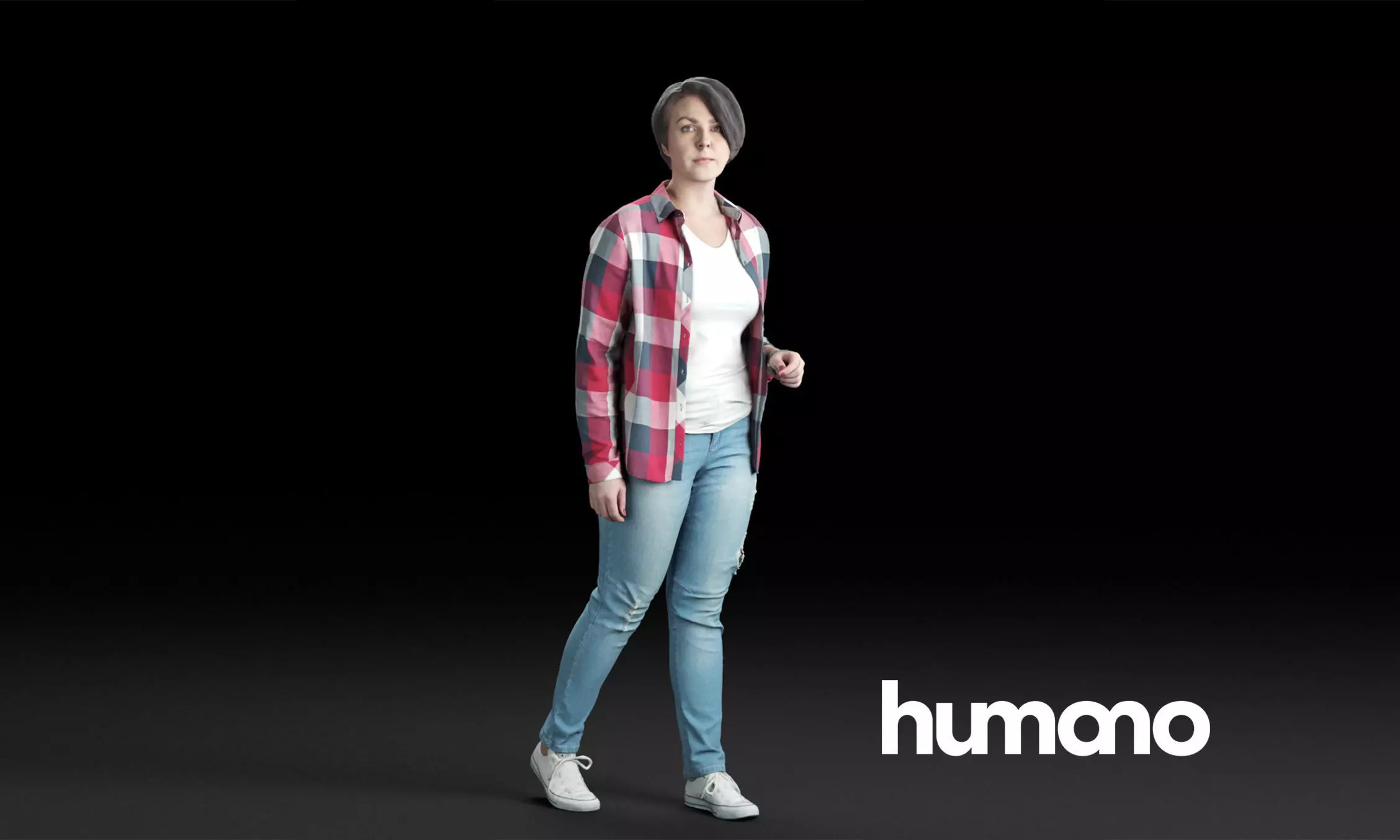 Humano Casual woman in checkered shirt Walking and talking 0214 3D model