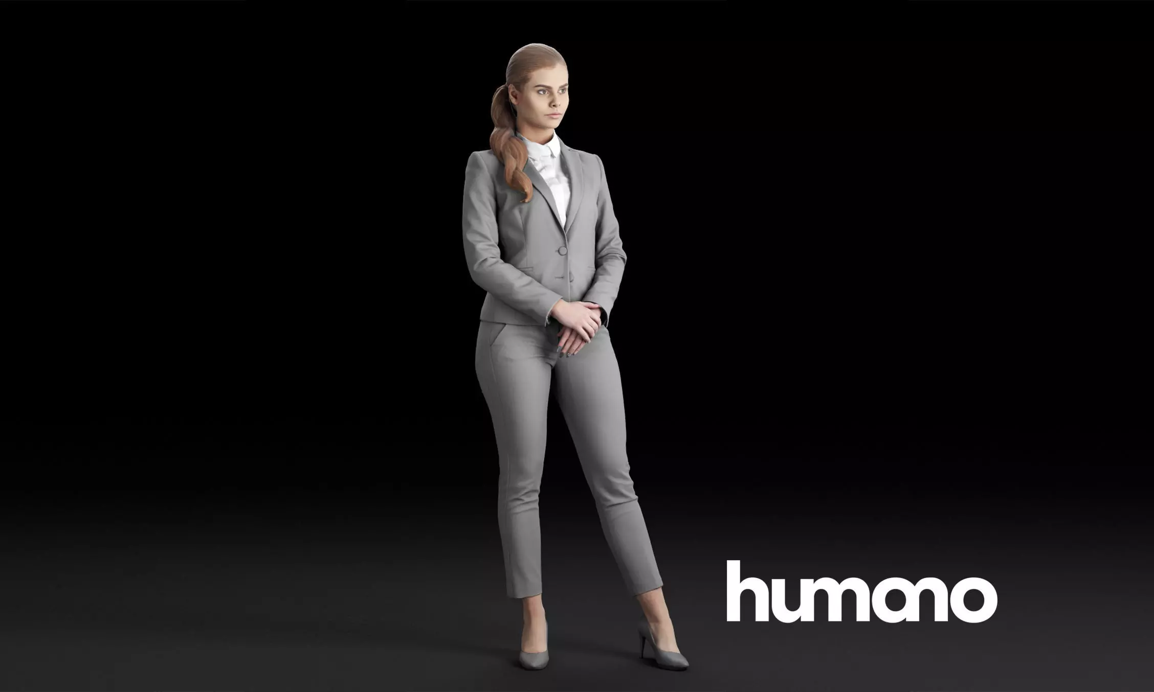 Humano Elegant woman in gray suit with crossed arms 0312 3D model