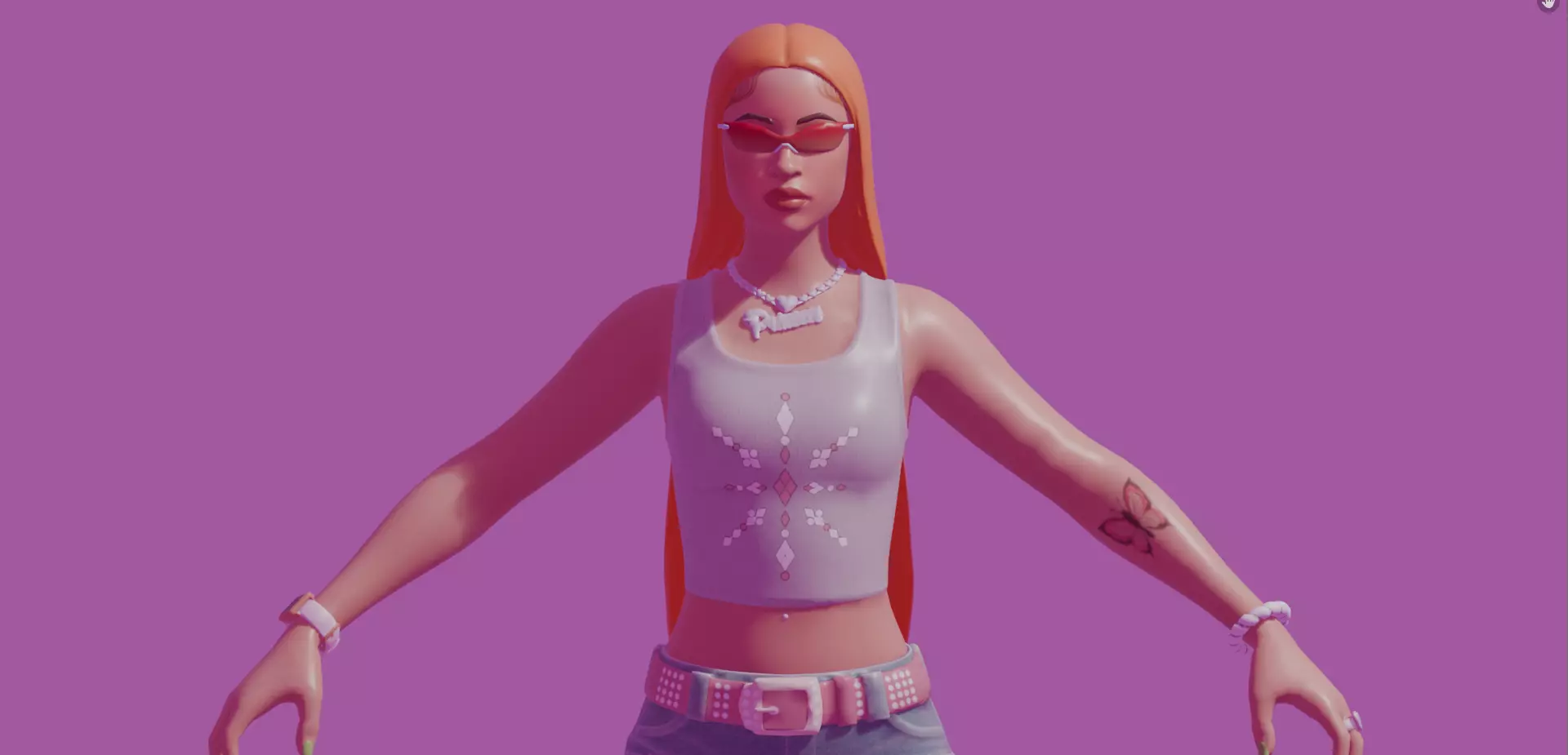 This is a high-quality stylized 3D character inspired by Ice Spice, designed in the style of character skins commonly seen in Fortnite. The model is built with a stylized PBR workflow, capturing the colorful, exaggerated proportions and clean shading typically found in modern battle-royale character designs. Every element from the hair and outfit to the accessories