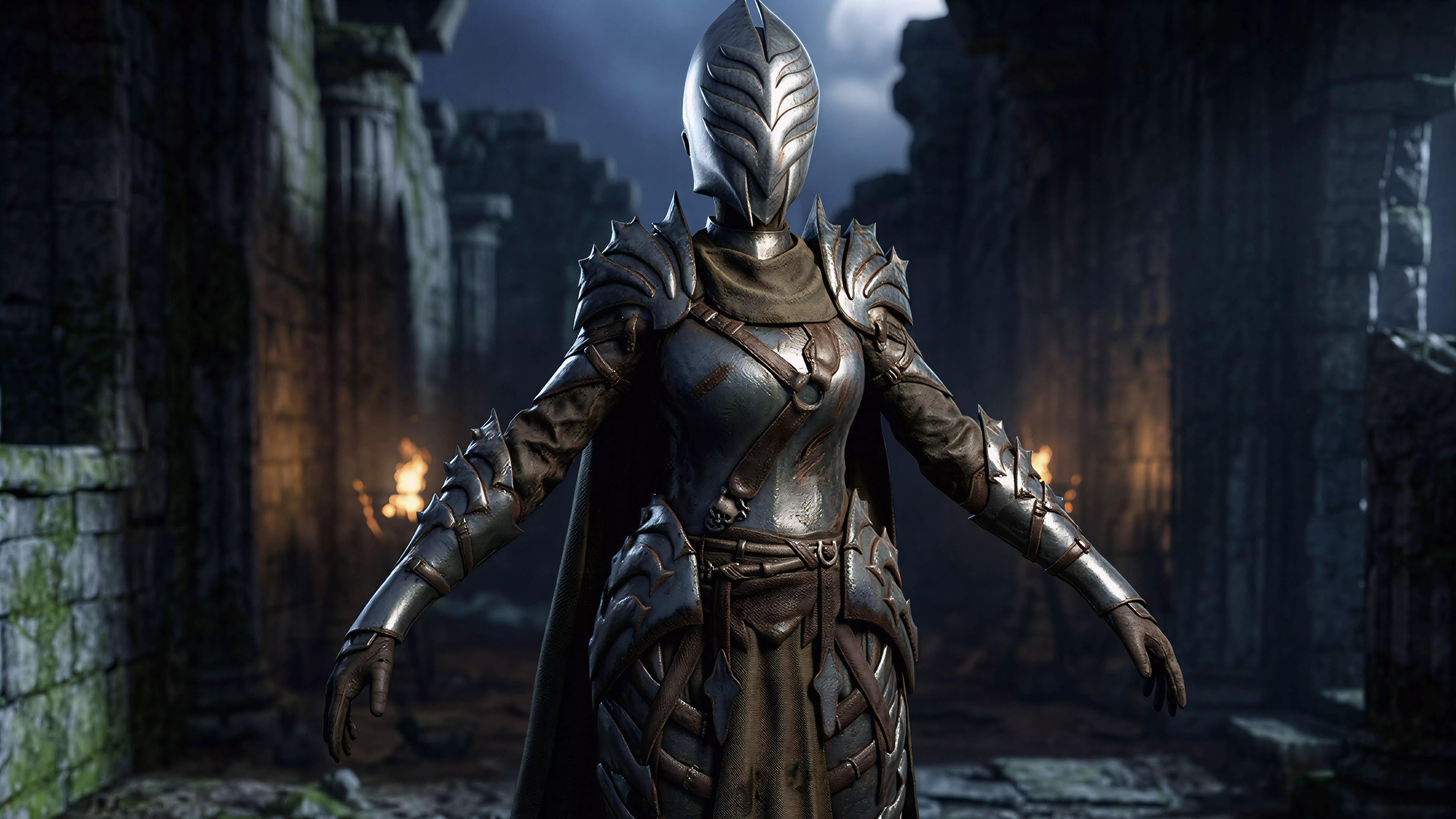 The Iron Valkyrie is a premium, high-fidelity 3D base mesh designed for top-tier fantasy or sci-fi gaming projects. This model showcases a masterpiece of layered plate armor design, featuring a unique slatted visor helmet, sharp articulated pauldrons, and heavy-duty leg guards.