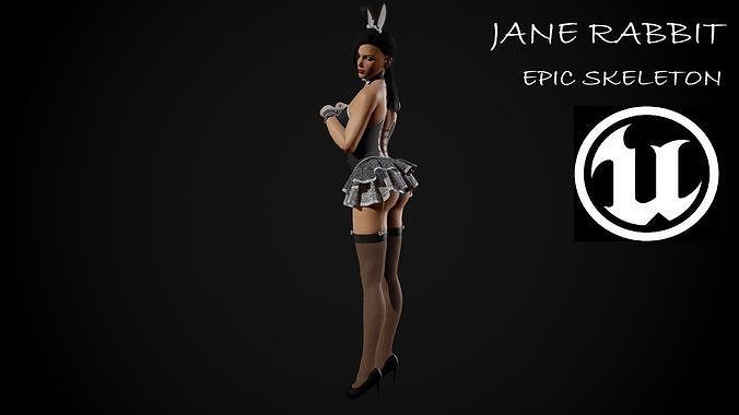 Jane Rabbit Low-poly 3D model. Low poly, game ready, rigged, PBR textures. EPIC SKELETON for Unreal Engine 4.