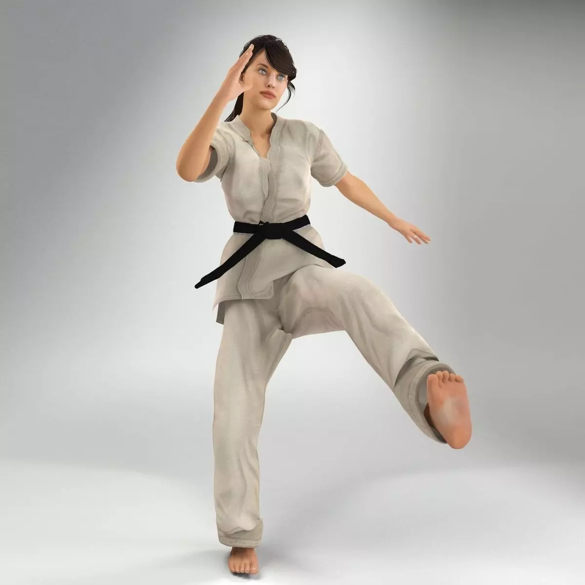 The high Quality polygonal 3d model of the Karate lady Light V2 Martha (Rigged).