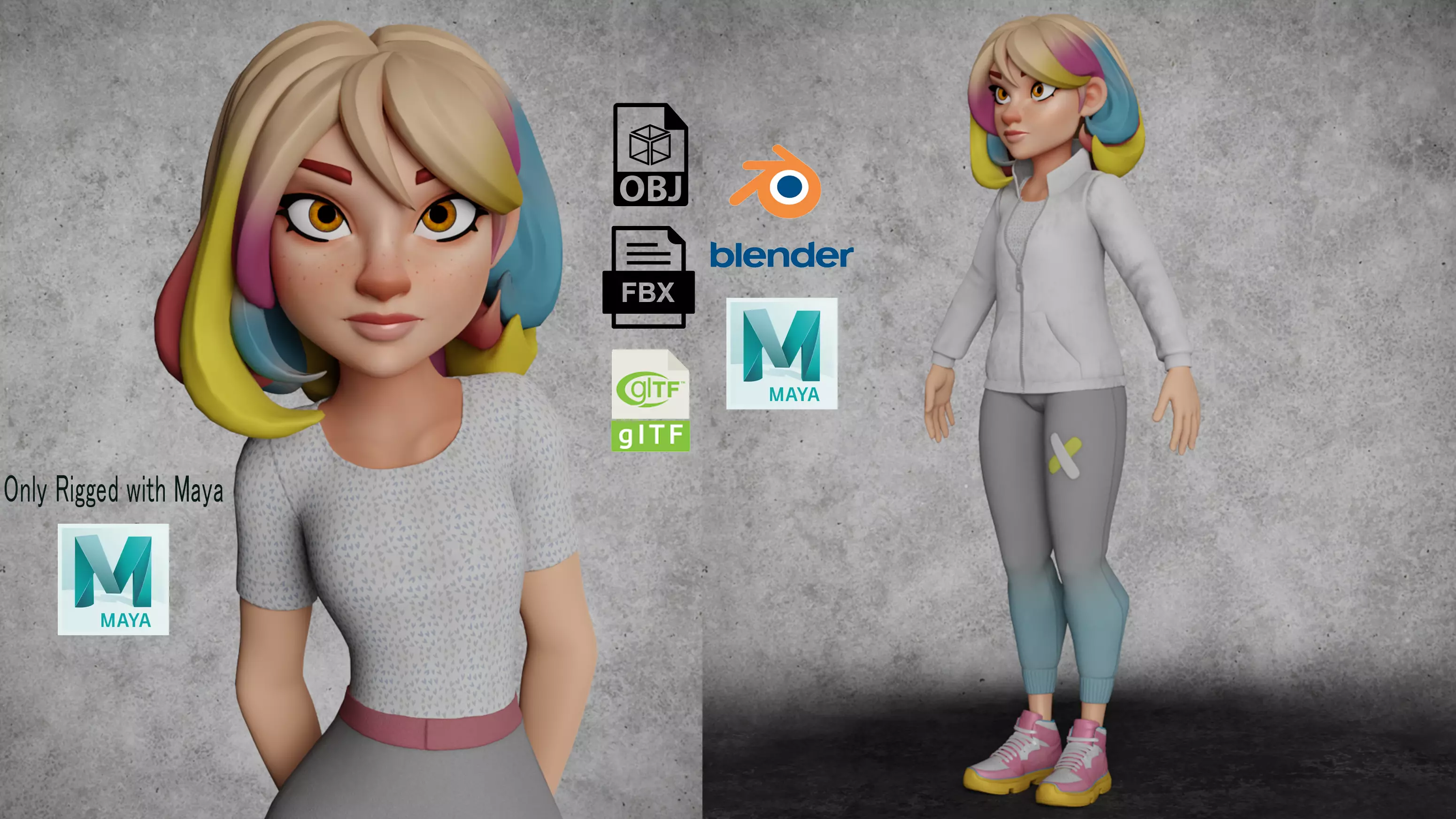 Lois Cartoon Girl Maya Rig Low-poly 3D model
