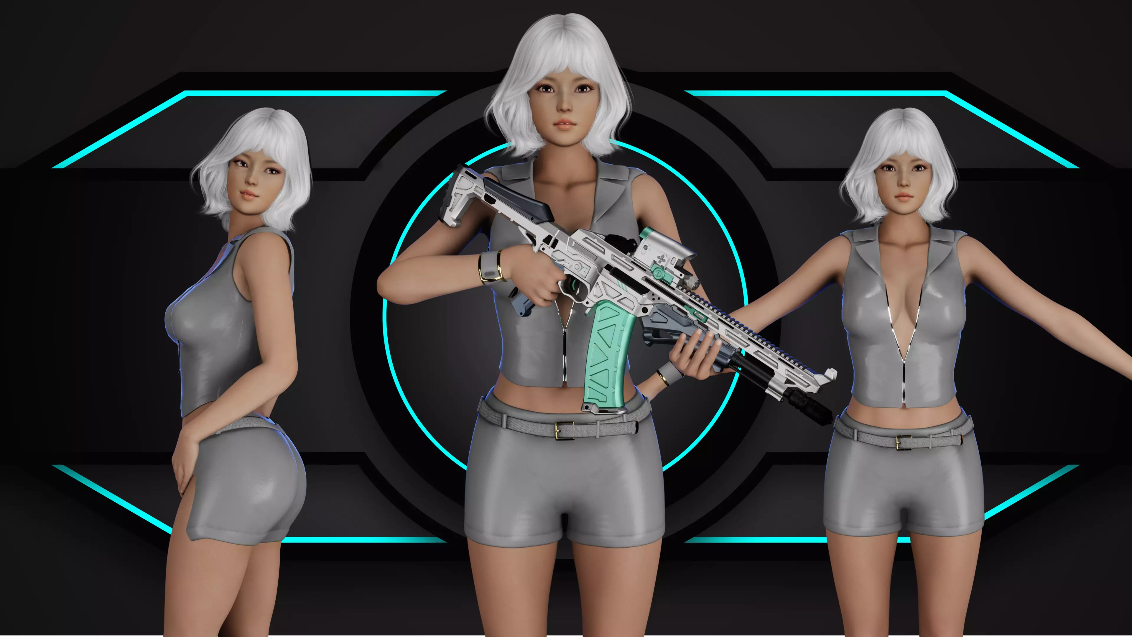 his is a Stylized Sci-Fi Girl Character, designed for games, animation, and cinematics. The model is clean, optimized, and fully rigged so you can use it instantly in any project.The package includes 3 different outfit variations and a sci-fi gun, making it perfect for action, adventure, cyberpunk, and futuristic themes.