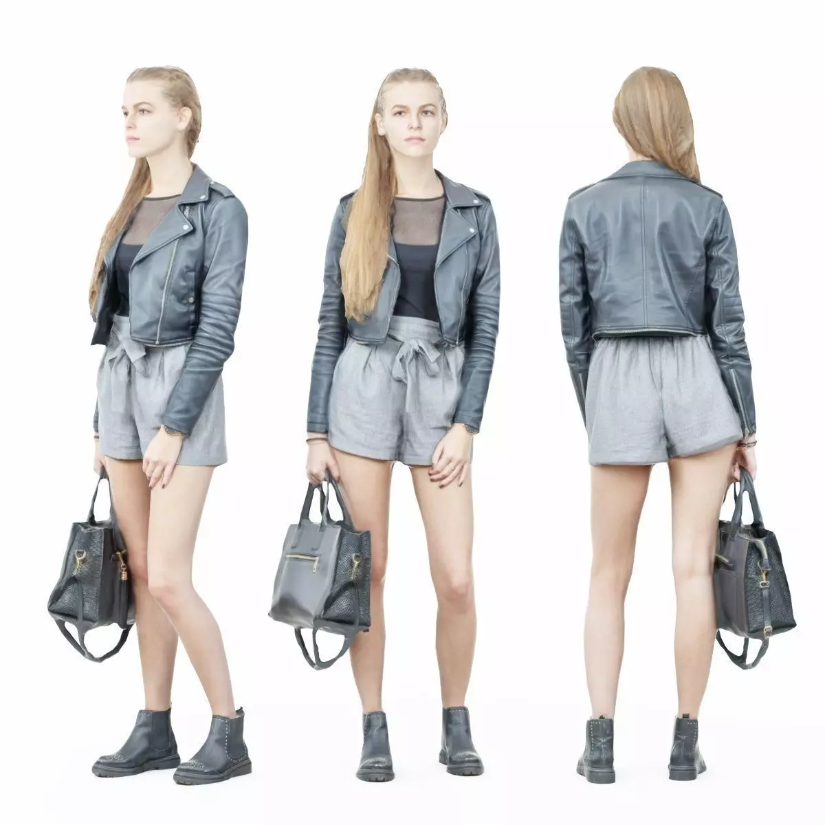 Photorealistic 3D Polygonal Insta Girl Miniature: Long Hair Girl in Leather Jacket Holding Handbag