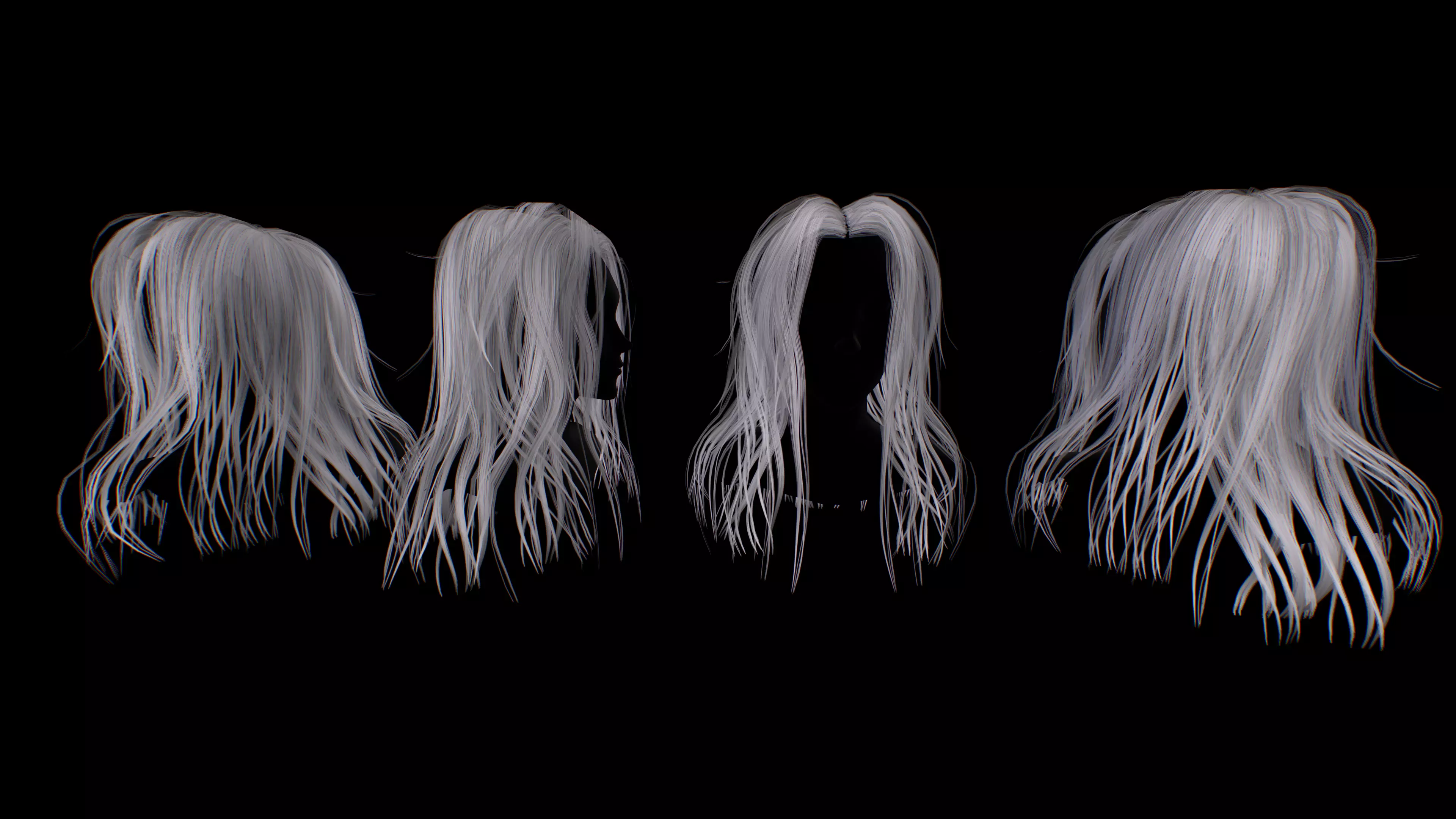 • The hairstyle has 10 color variations: 5 natural colors, 4 non-natural, and 1 gray for coloring to your own color (also can be used as a depth map).