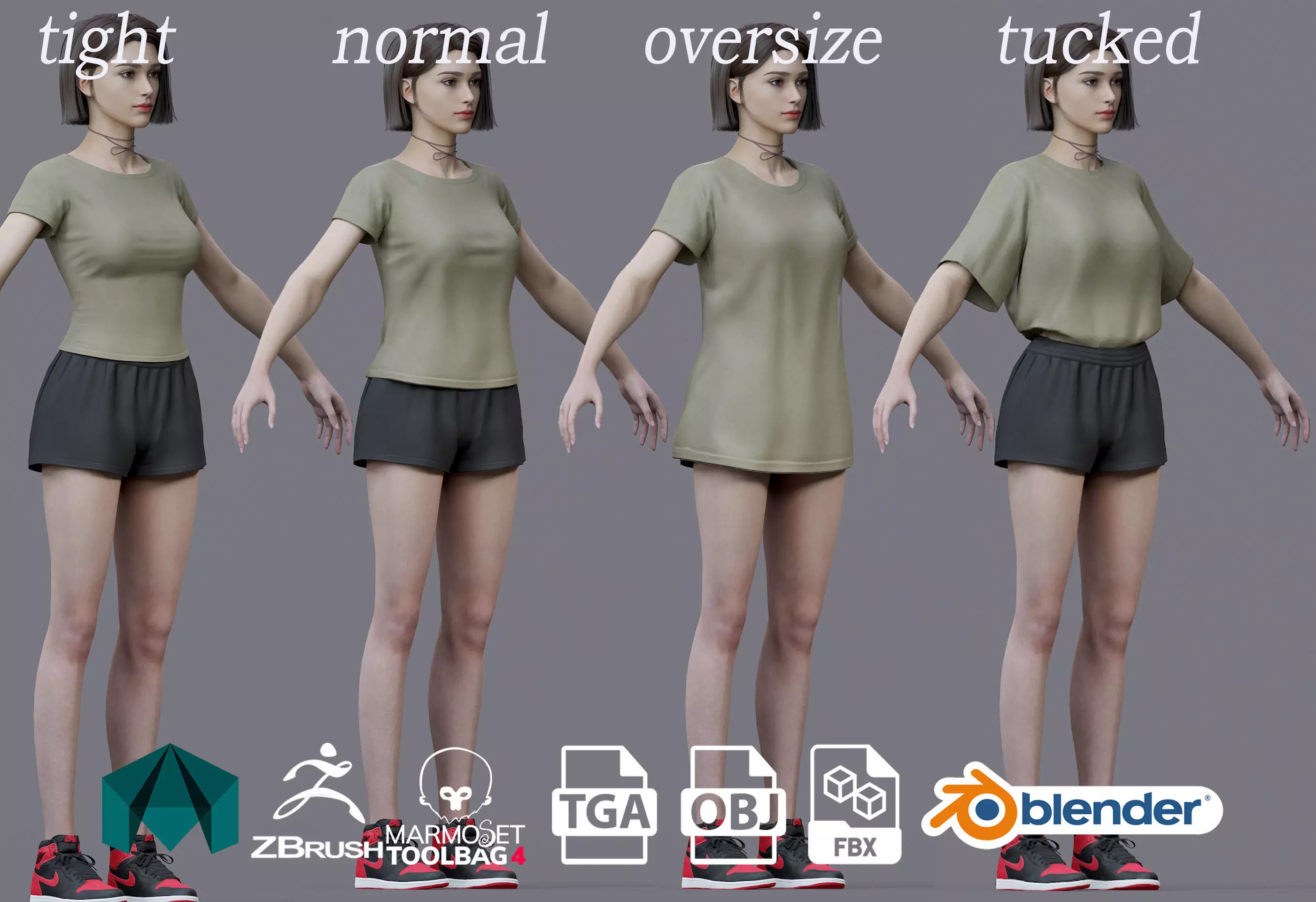 Textures: Face 4096.Body 4096. Eyes 1024 .Eyebrows 2048. Eyelashes Hair 2048.top 2048.Trousers2048,Shoes4096.
