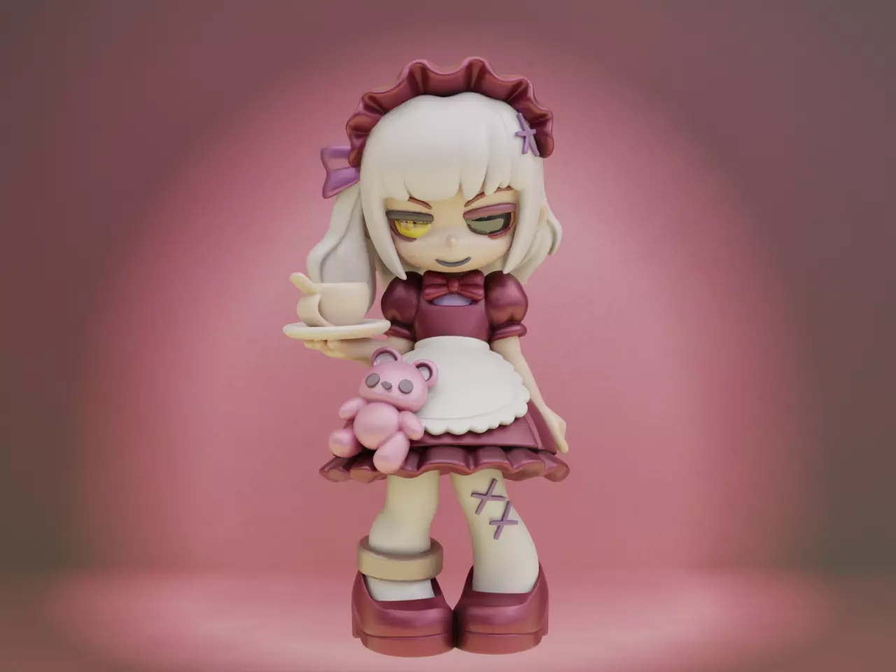 Bring a touch of unique charm and intriguing character to your projects with this meticulously crafted 3D model of Maid Of The Night from the Yandere Girls Remove The Label Series, designed as a captivating collectible art toy. This stylized anime-inspired figure masterfully blends adorable maid aesthetics with a subtle hint of mischievous or unsettling charm.