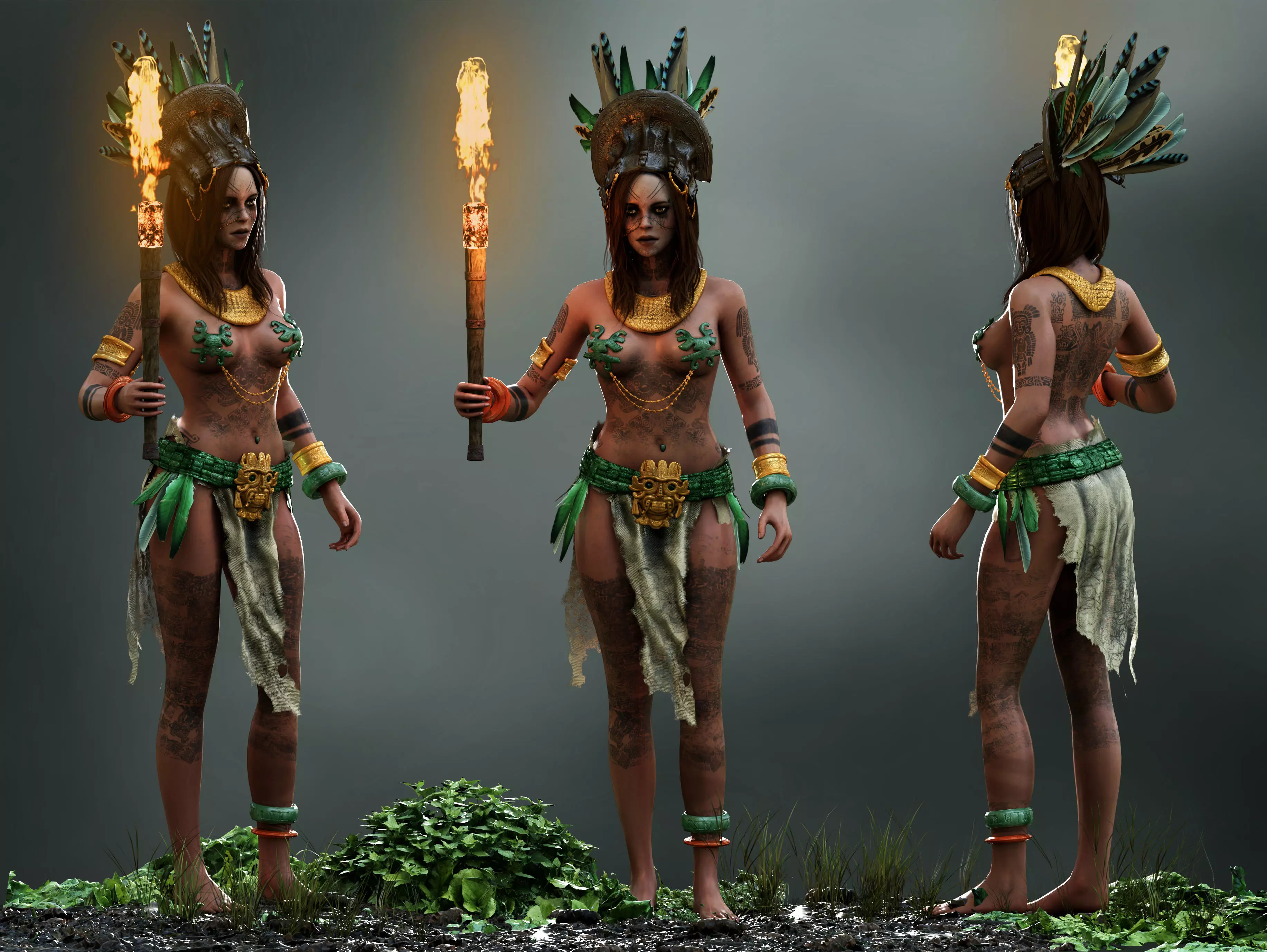 Detailed low poly 3D model Mayan Girl
