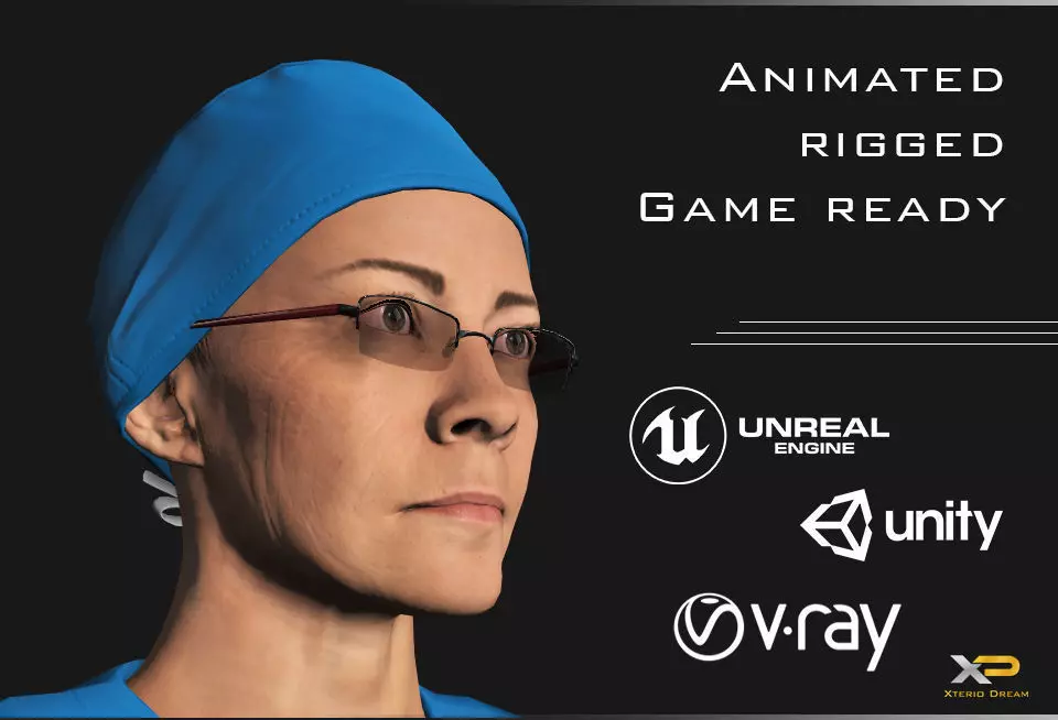 Low poly elder Doctor 3D Model - Dr. Nora