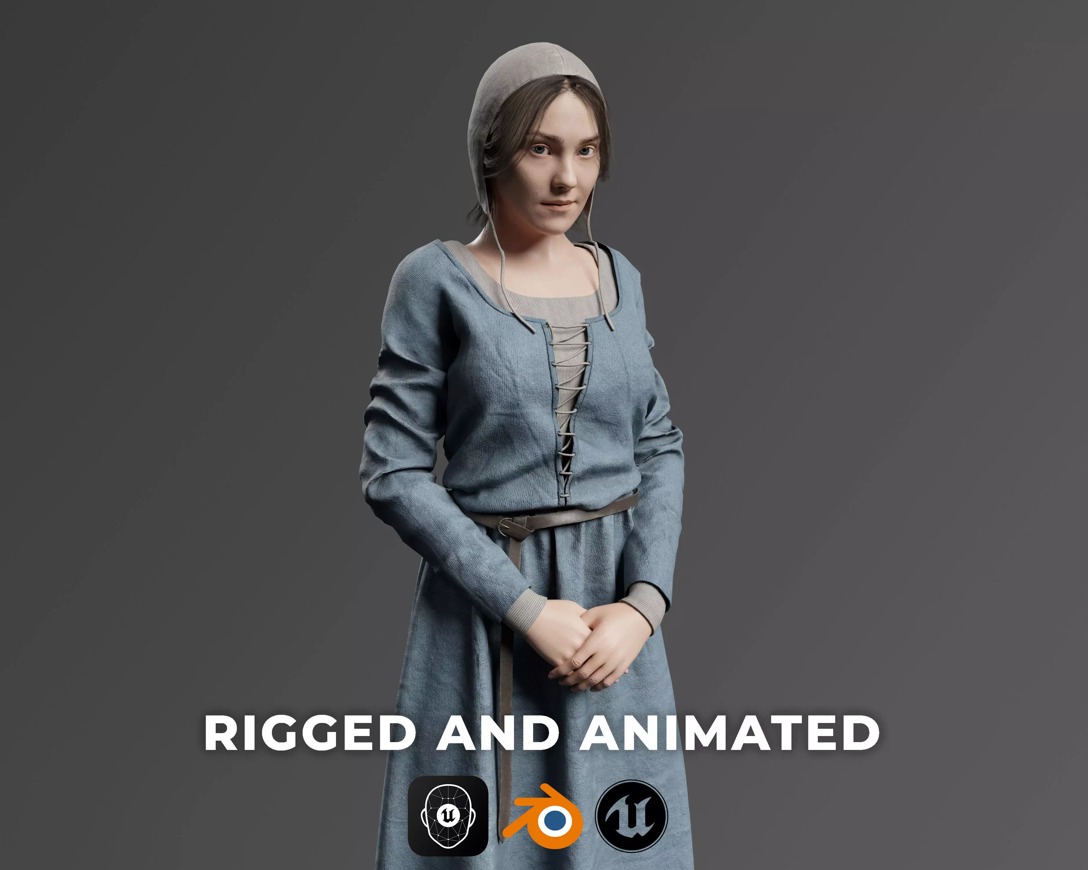 3D medieval peasant female character was carefully crafted by our team based on references and sources. We preserved high detail with scan and high poly sculpt.
