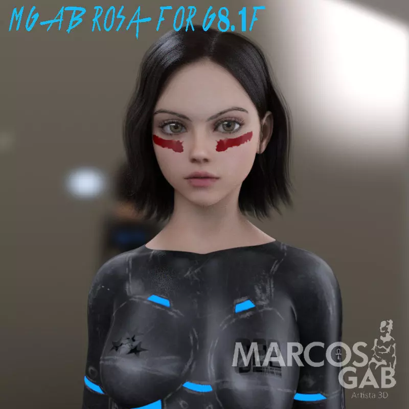 This is MGAB Rosa for Genesis 8.1 Female, this is a beautiful Woman created by me and my wife Based on famous manga Alita - Battle Angel, and the name is a tribute for the actress who lives her at the cinema. It was made using Hexagon 2.5, Zbrush and PhotoShop CS21.She is a beautiful woman and I hope you enjoy to create your art with her.
