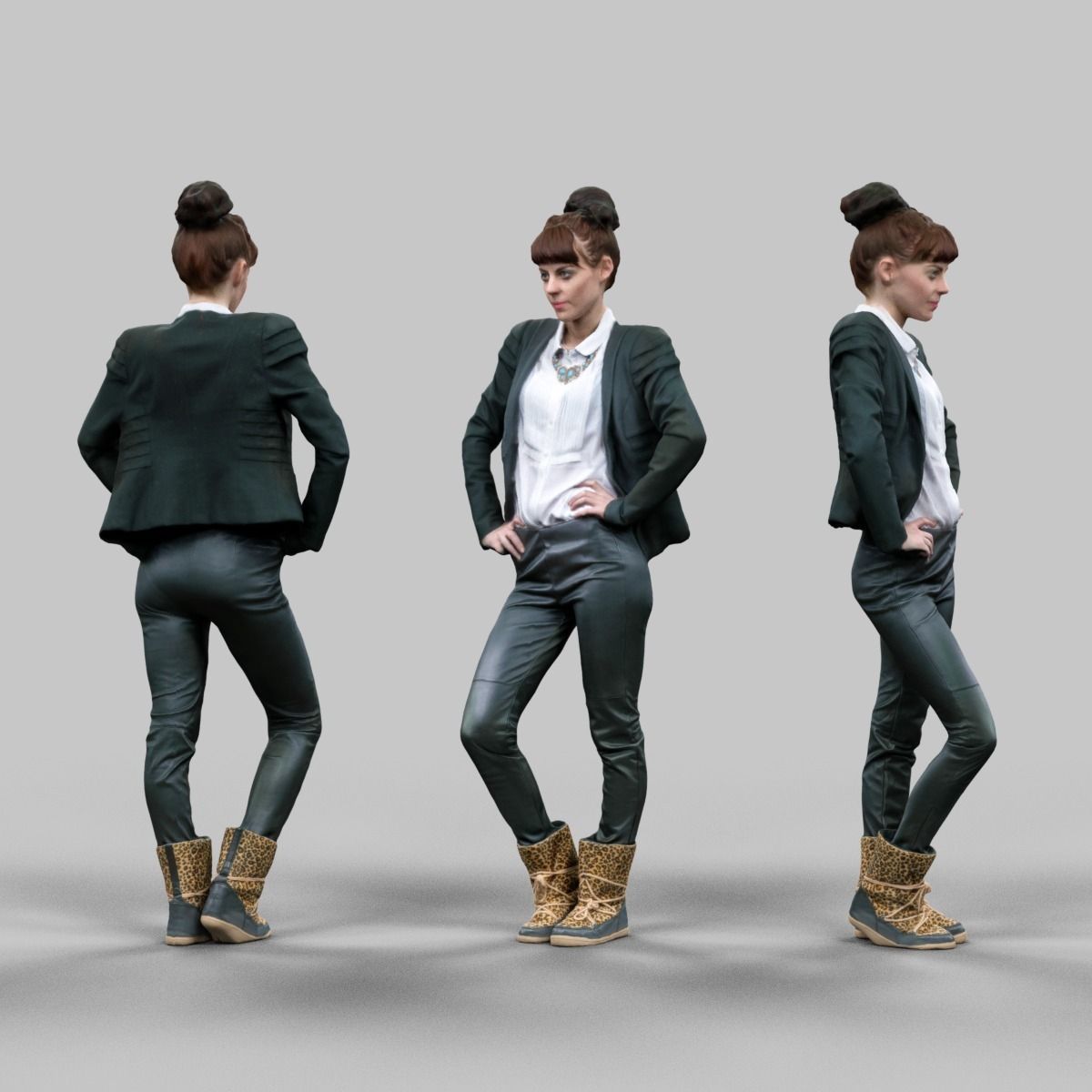office girl posing in leather pants Low-poly 3D model