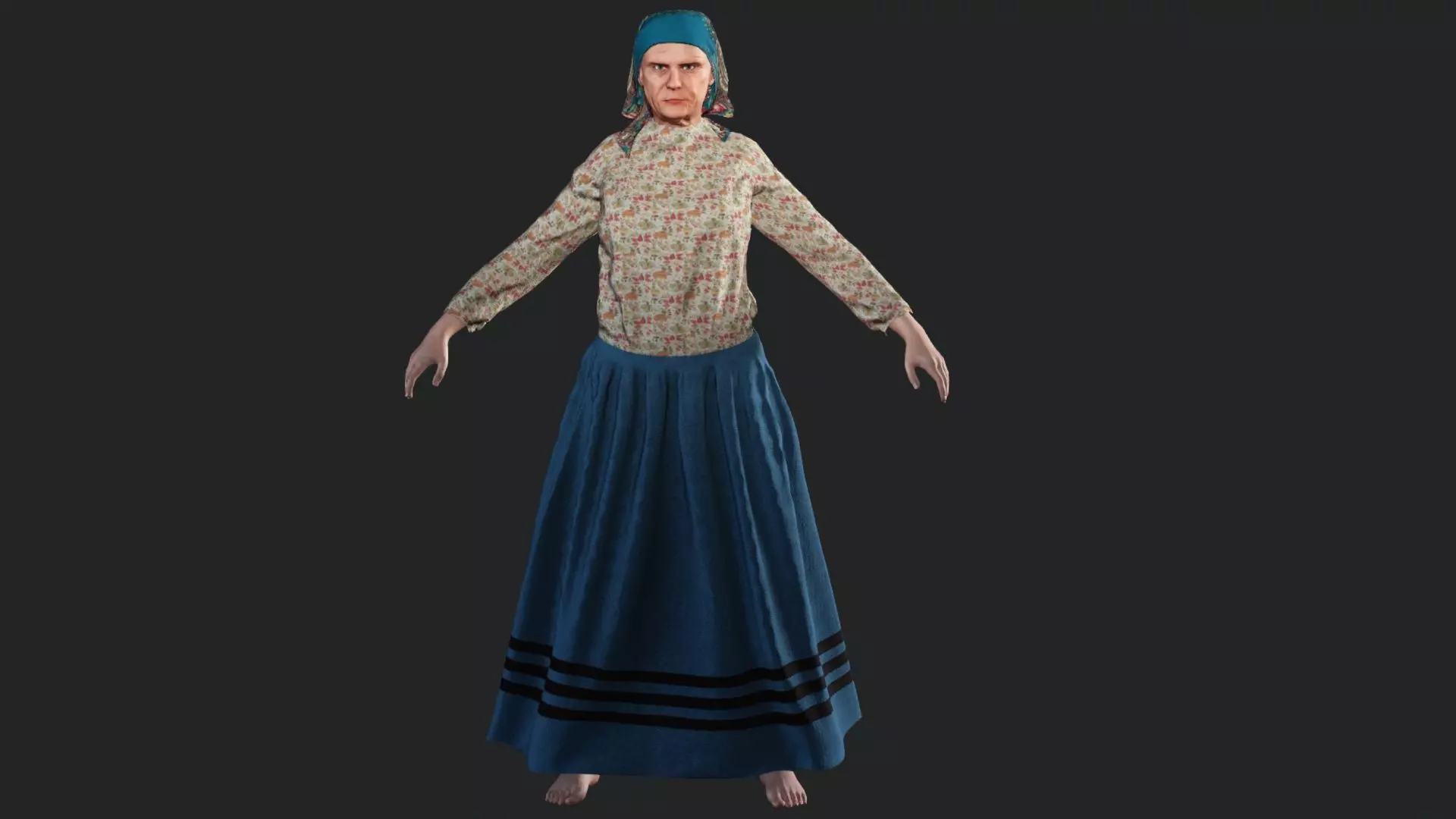 Low-poly of the rigged character old woman farmer. Include face rig. Game ready. Base mesh set of a male. Model includes format files fbx, obj. Can be used in games and movies. Product comes with and 1 OBJ files, 2 fbx.