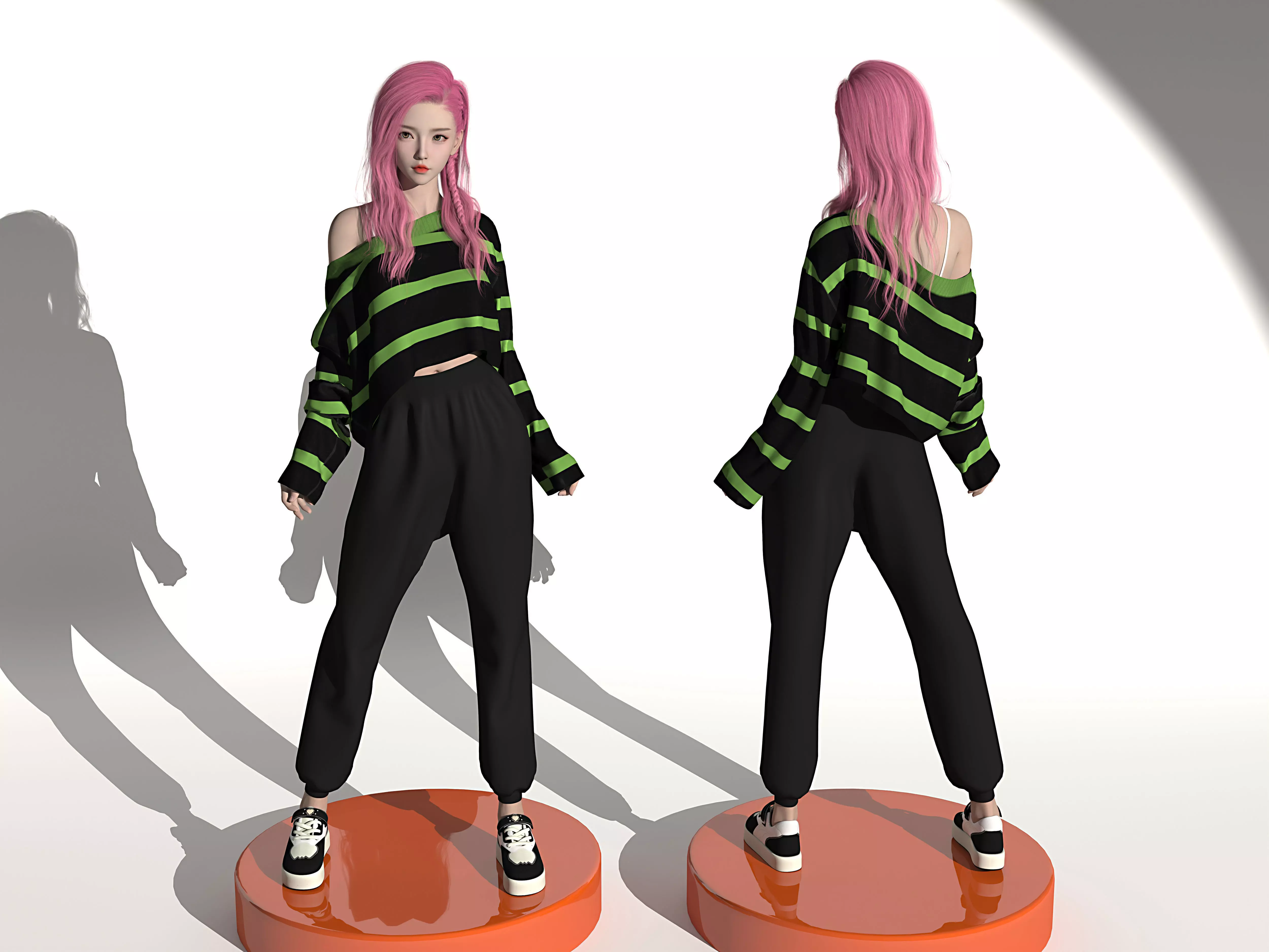 Pink long haired girl 3D model Low-poly 3D model
