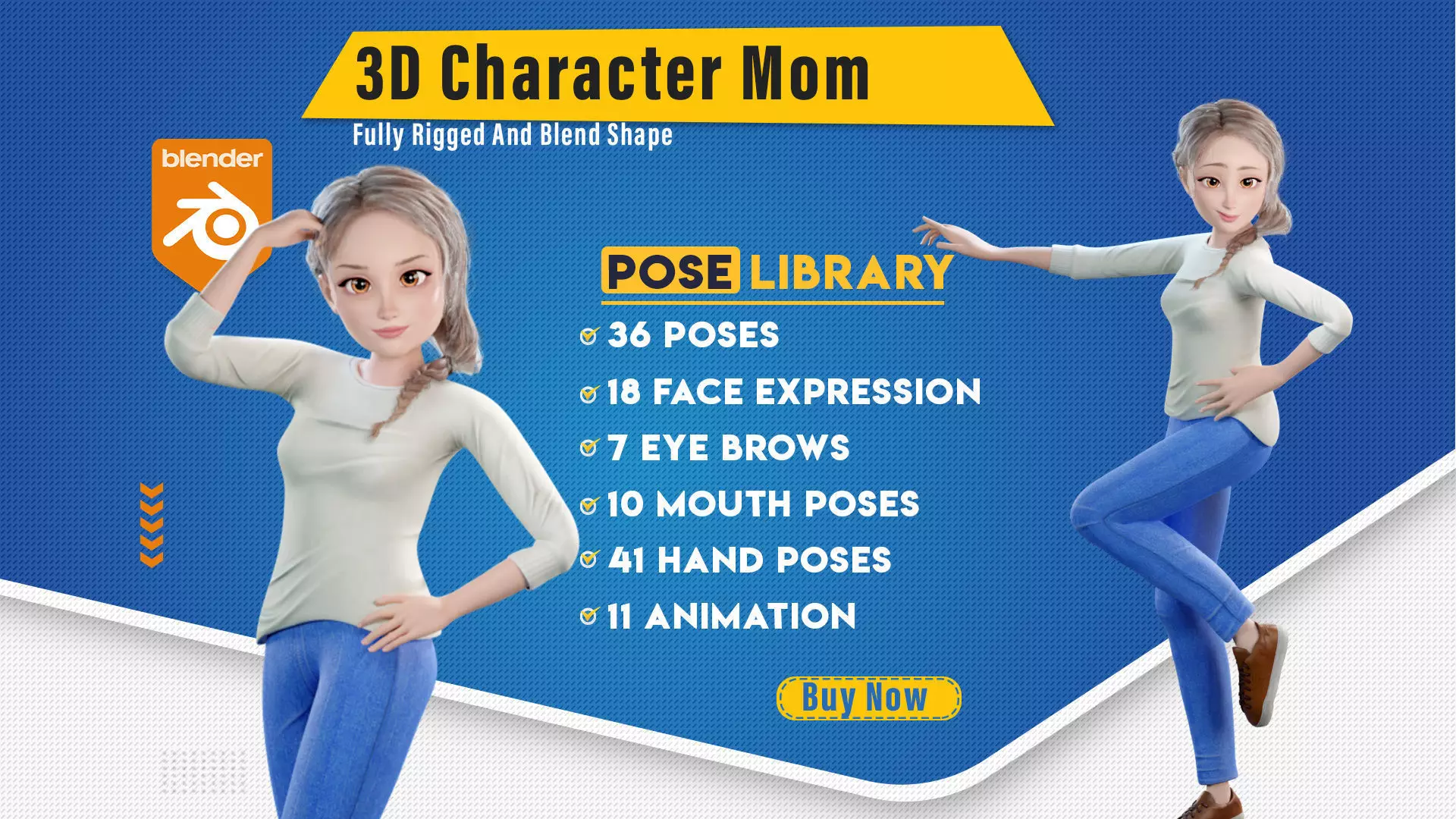 Pixar-Style Mother is a Blender Rigify control rig, ready to be animated.