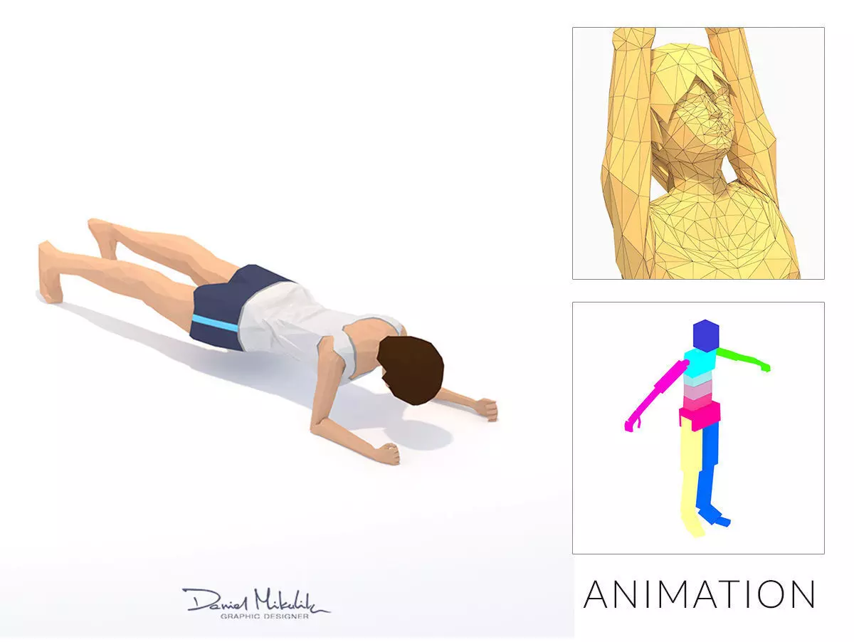 Plank Yoga Exercise Woman Animation Low-poly 3D model