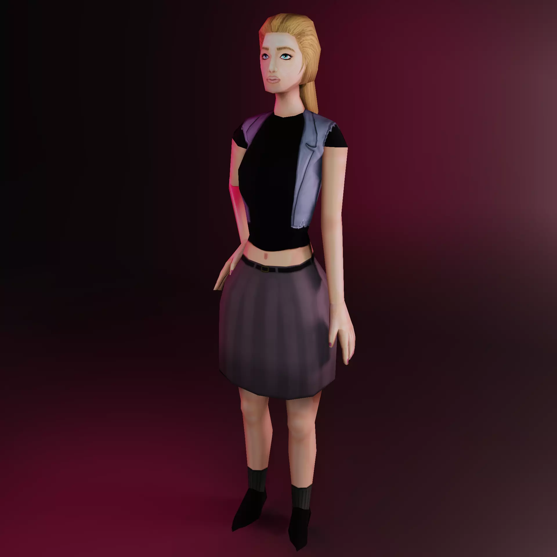 - Fully original 3D model and hand-painted texture - Designed to resemble a young blonde female character, evoking the look of 90s toy and cartoon aesthetics - Stylized proportions and pixel-painted textures emulate the low-resolution, non-PBR aesthetic of early 3D console games - Textures created using Krita, with additional work in Blender and Pixelover