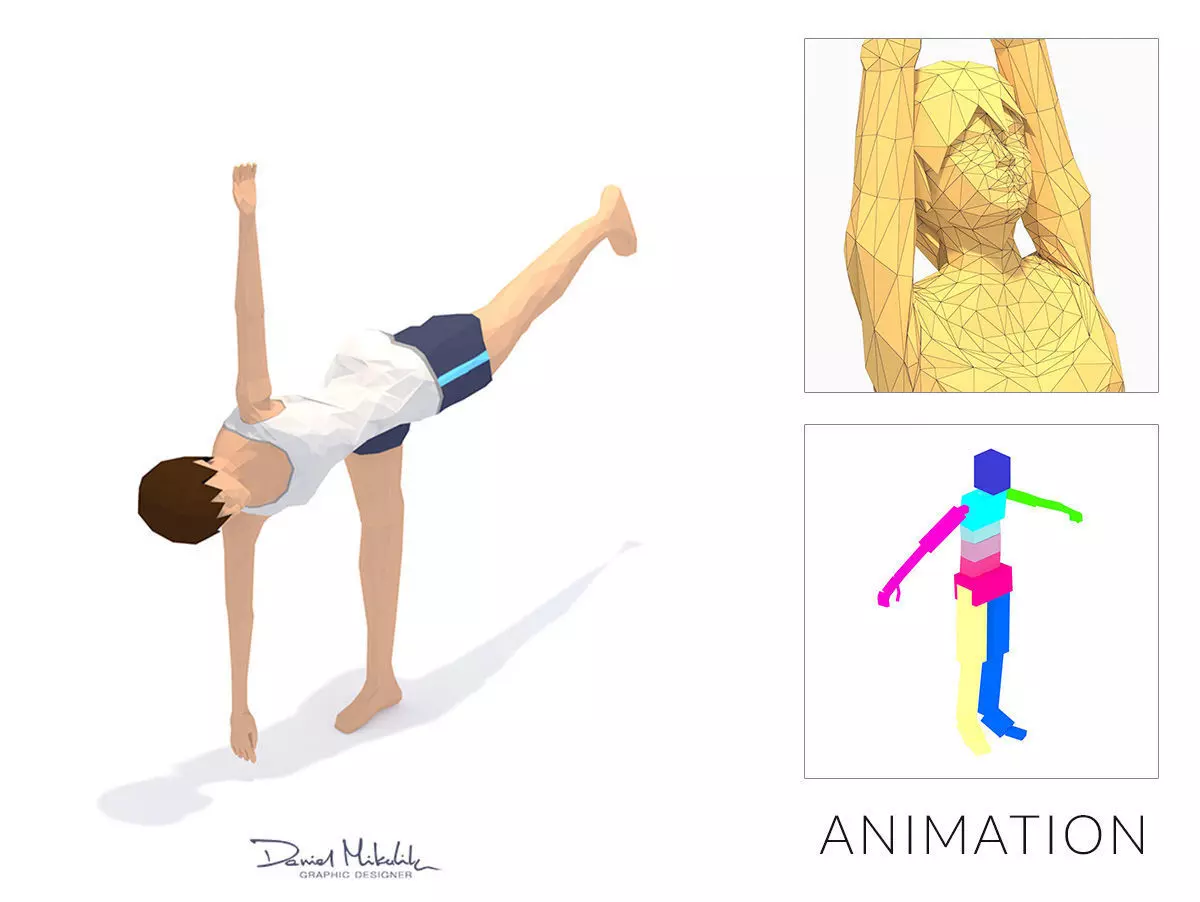 Pyramid 2 Yoga Exercise Woman Animation Low-poly 3D model
