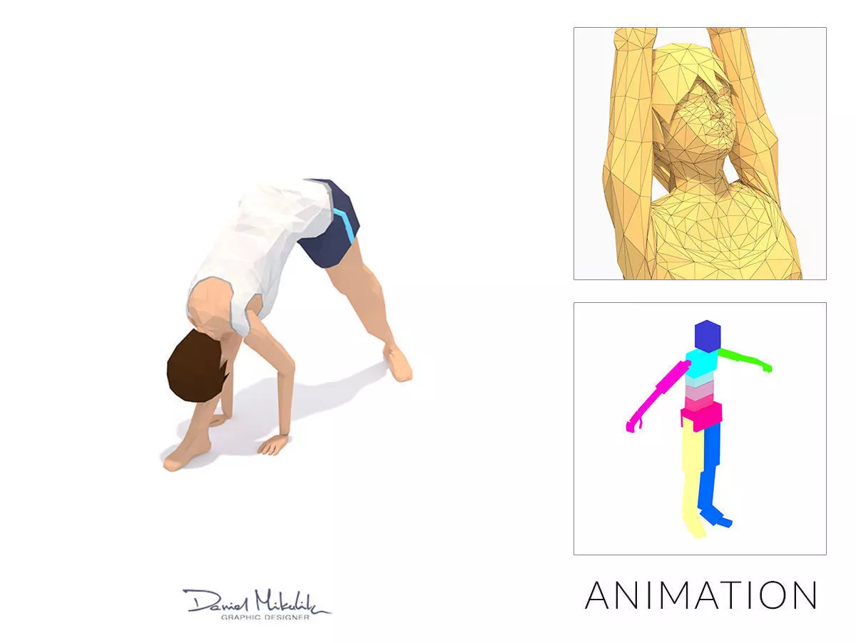 Pyramid Yoga Exercise Woman Animation Low-poly 3D model