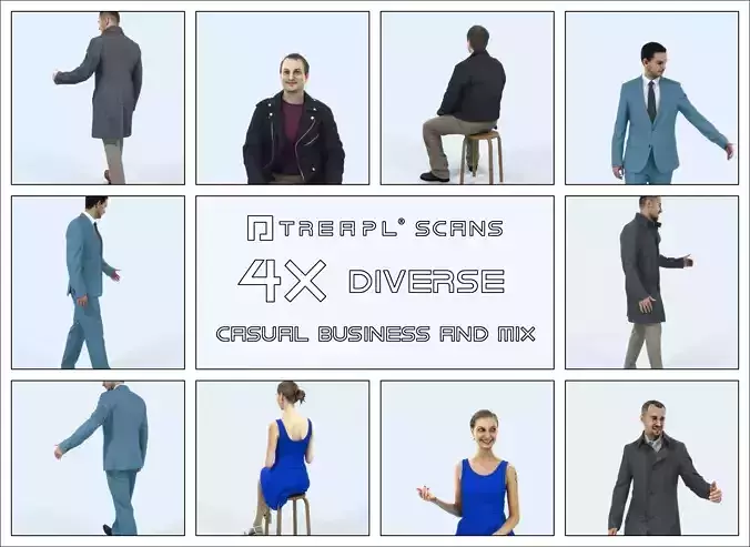 Treapl characters are premium quality scanned 3d people for high-end architecture and advertising - we love presenting both - attractive professional models as well as casual everyday people.