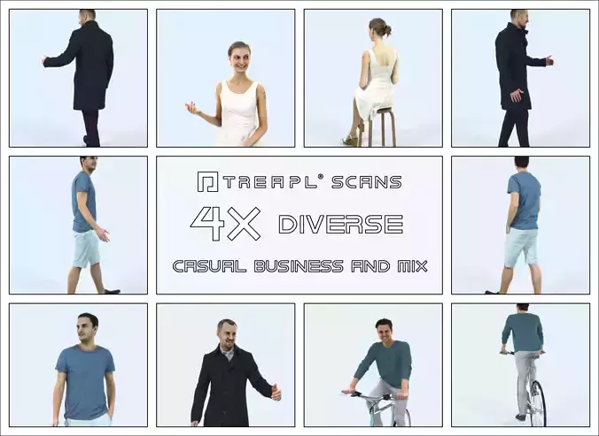 Treapl characters are premium quality scanned 3d people for high-end architecture and advertising - we love presenting both - attractive professional models as well as casual everyday people.