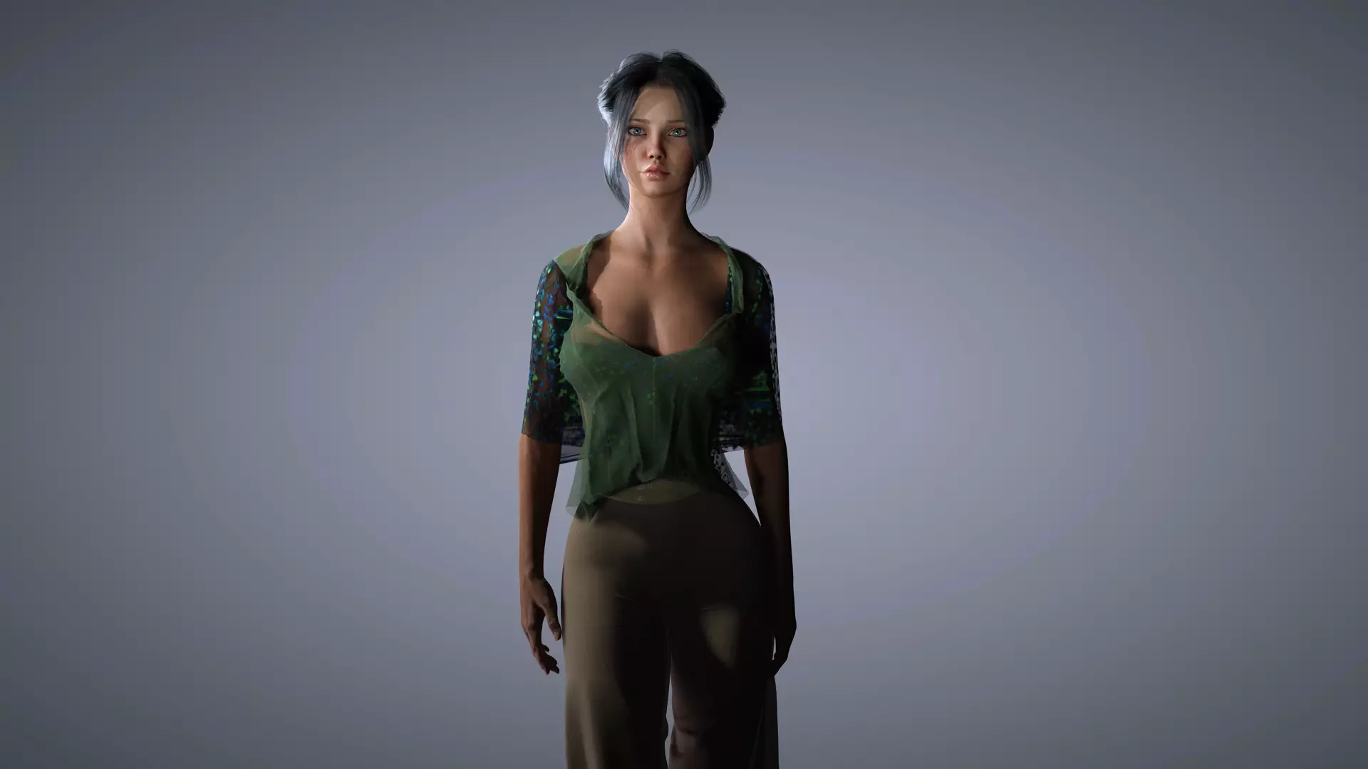 This realistic female character was designed to deliver both versatility and emotion, ideal for video games, cinematics, or artistic 3D projects.Her expressive face, high-definition skin textures, and sheer green top give her a subtle yet captivating presence.