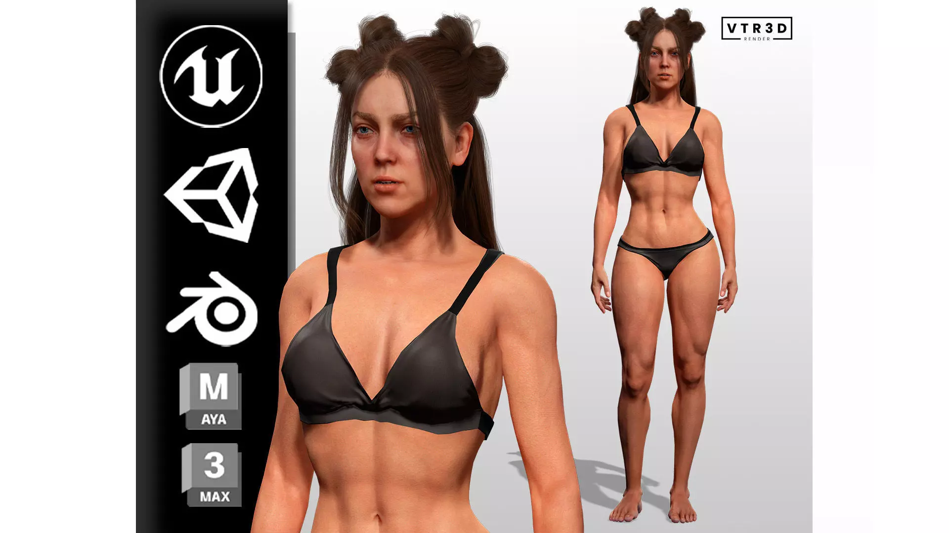 This realistic athletic female character features a fit and muscular body type, perfect for action games, cinematic productions, and immersive simulations. Built with clean quad topology (~30k faces) and 4K PBR textures, it is optimized for performance while preserving high visual fidelity in Unreal Engine, Unity, Blender, 3ds Max, and Maya.