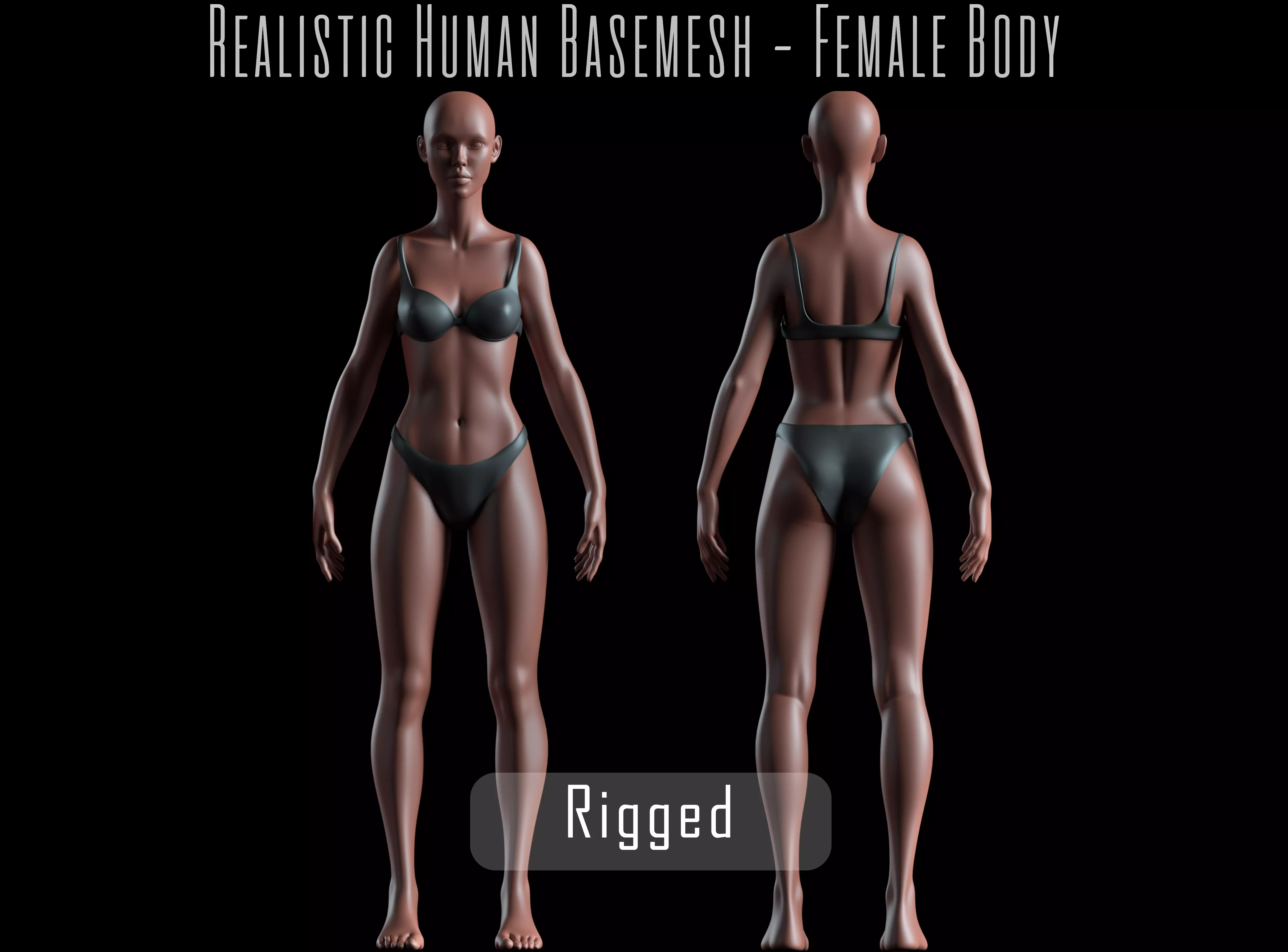 Here's my version of a female basemesh (hopefully) realistic body. Model is skinned and it's provided with a simple but functional rig as the Male and Child models.