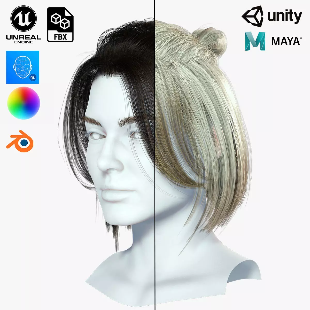 Realistic modular hair ,,bros editable and made for game and render