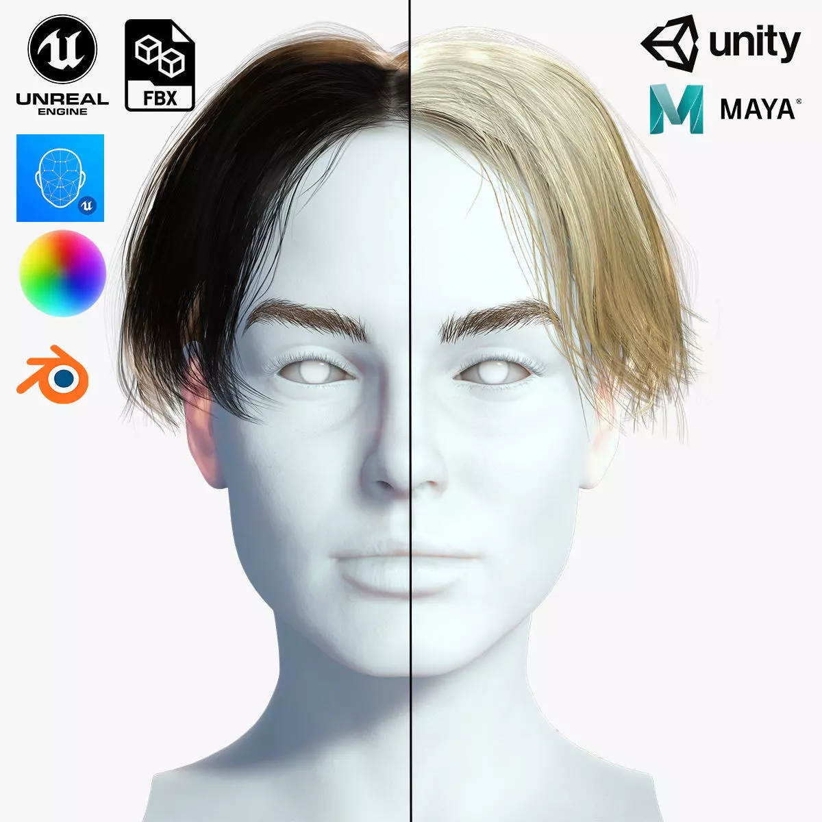 Realistic modular hair ,,bros editable and made for game and render