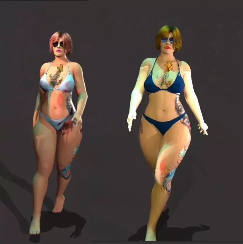 realistic model tattooed girl in denim shorts Low-poly 3D model