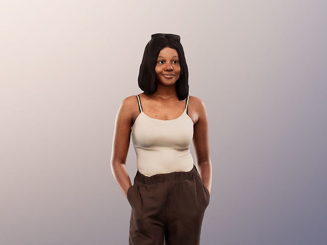Reina 13482 - Standing Casual Black Woman Low-poly 3D model