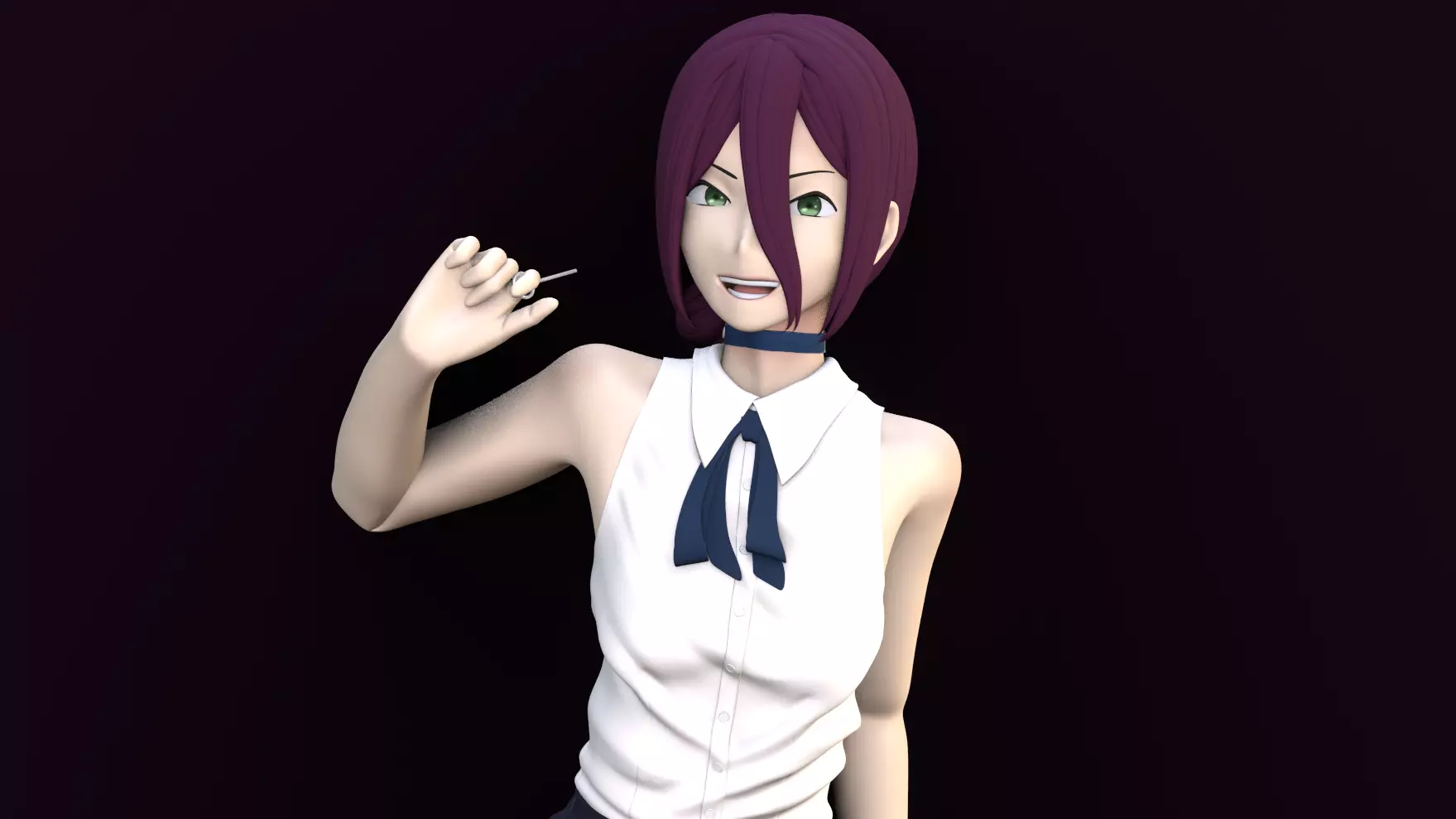 Straight out of the CHAINSAW MAN anime and manga, Reze is a short young woman who has short black hair with purple undertones. She is prone to blushing a lot. On her neck she wears a choker with a grenade filter sticking out of one side. I hope you enjoy it. Please leave good product reviews. Well, the project includes three versions of Reze:1- Lowpoly: it is ready to make subdivisions in its mesh, with a rigged with inverse kinematics and many groups of vertices. Despite looking for low poly, there was also the approach of modeling all the details of the character in 3d, so each thing was tried to have its own mesh. Regarding the UV maps, they are without overlapping and there are several, they have a resolution of 4k each, this in order not to compact many textures.2- ready to print: this version of the model has a higher polygonal density, since it is intended to be printed by means of a 3D printer. It shares the same UV maps and textures as the low poly version and comes with a base to decorate. 3- Also ready to print and also only in underwear, so that you can better appreciate her figure.
