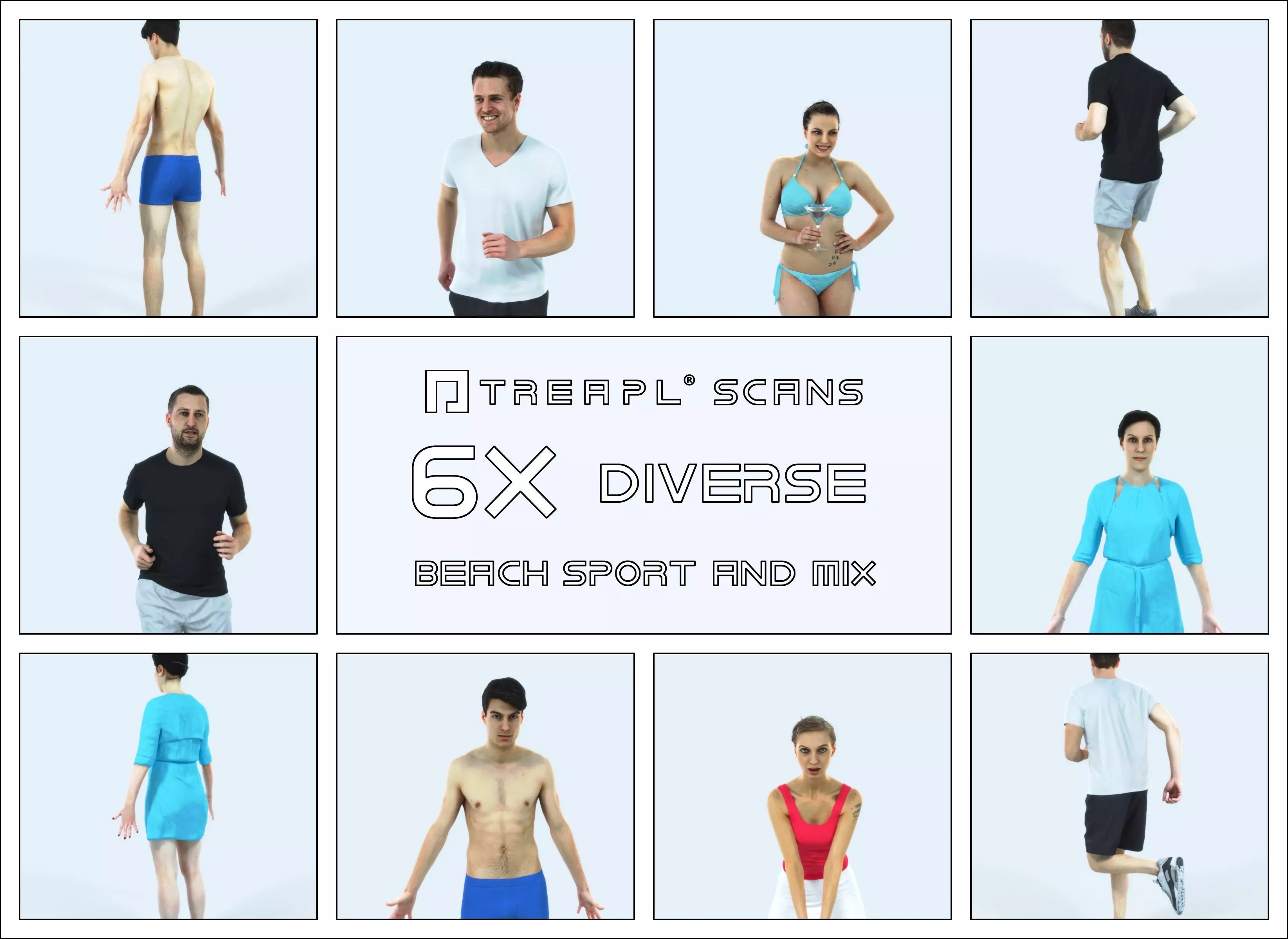 Treapl characters are premium quality scanned 3d people for high-end architecture and advertising - we love presenting both - attractive professional models as well as casual everyday people.