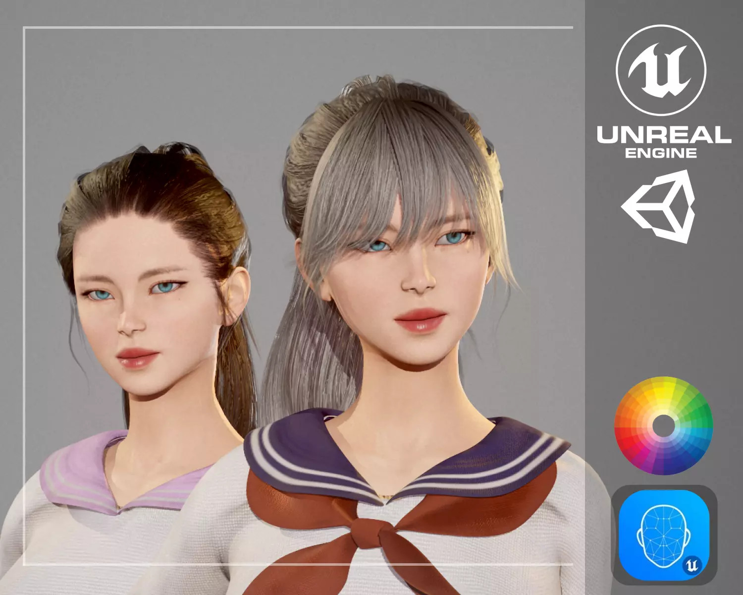 SRF(Semi-Realistic Female) Series Modular Character for Games and VT. Rigged to Epic Skeleton(UE4). Live-Link Ready with 52 ARkit Blendshapes.