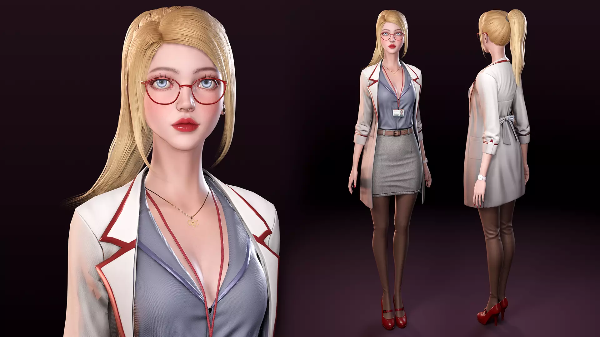 SK_ScientistGirl_02: Vertices: 25,883; Triangles: 42,518;