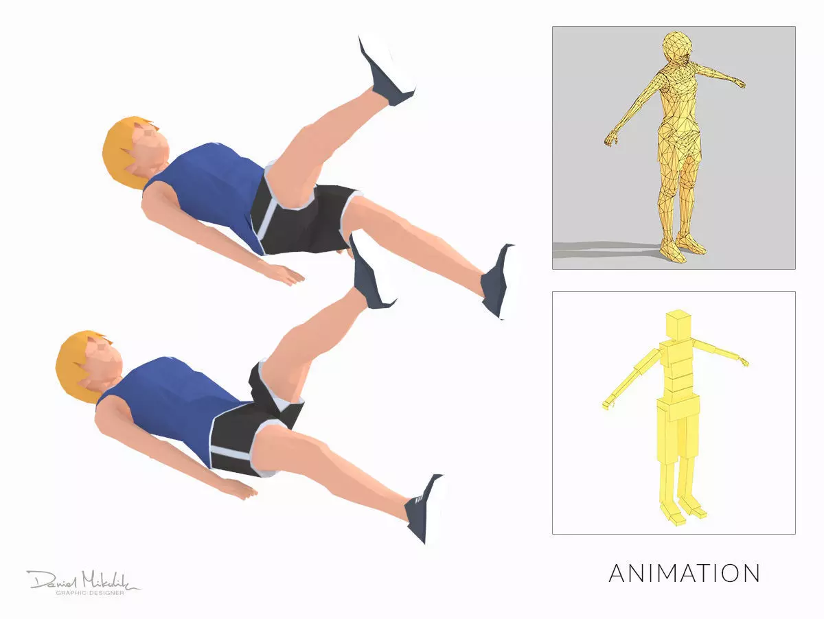 Animations of exercise Woman Low poly3d model in flat surface style.Animation created in CAT system and exported to FBX files for loop sequence.Extra textures as bonus
