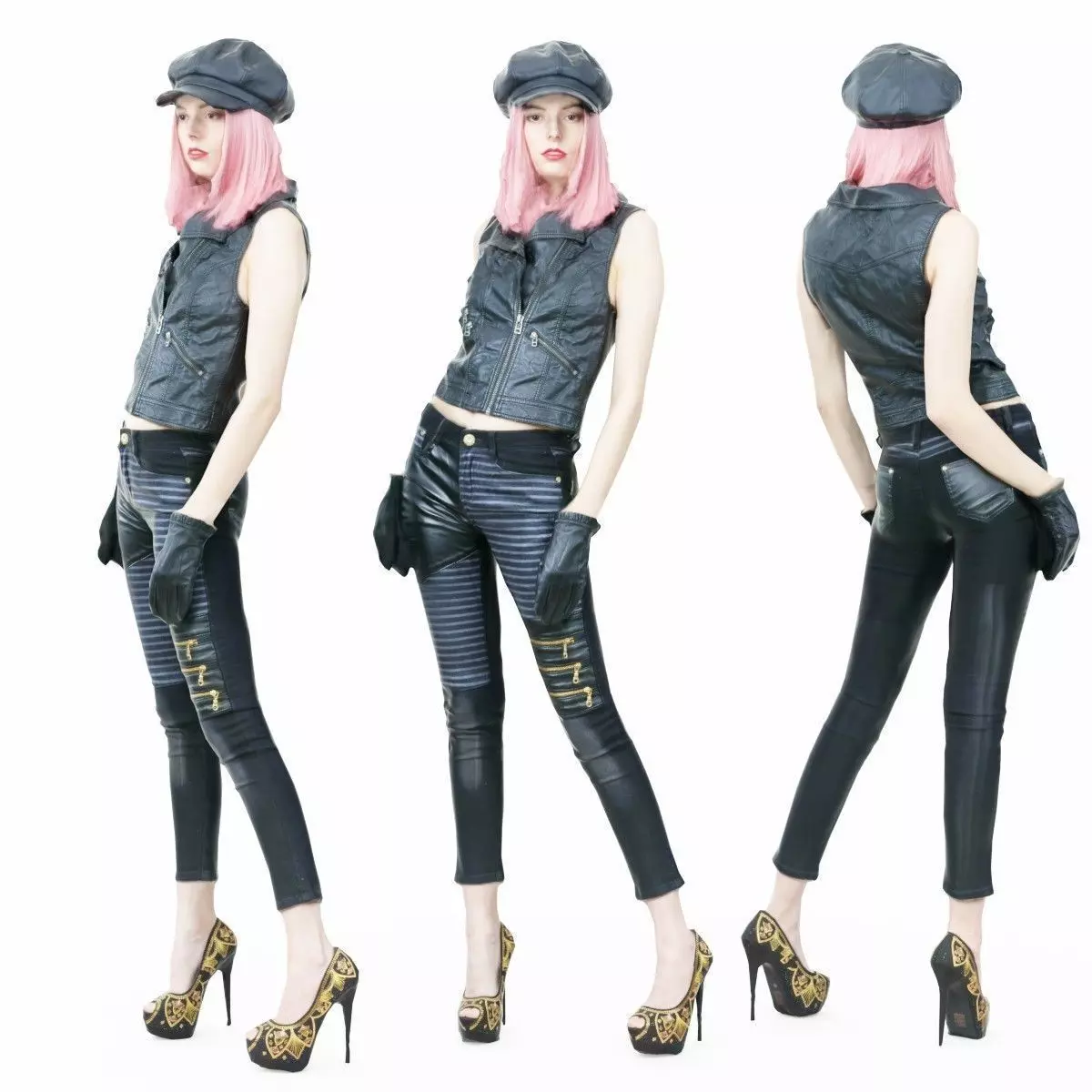 Cute girl for 3D rendering or Augmented & Virtual Reality: Sexy Girl in Black Biker Pants