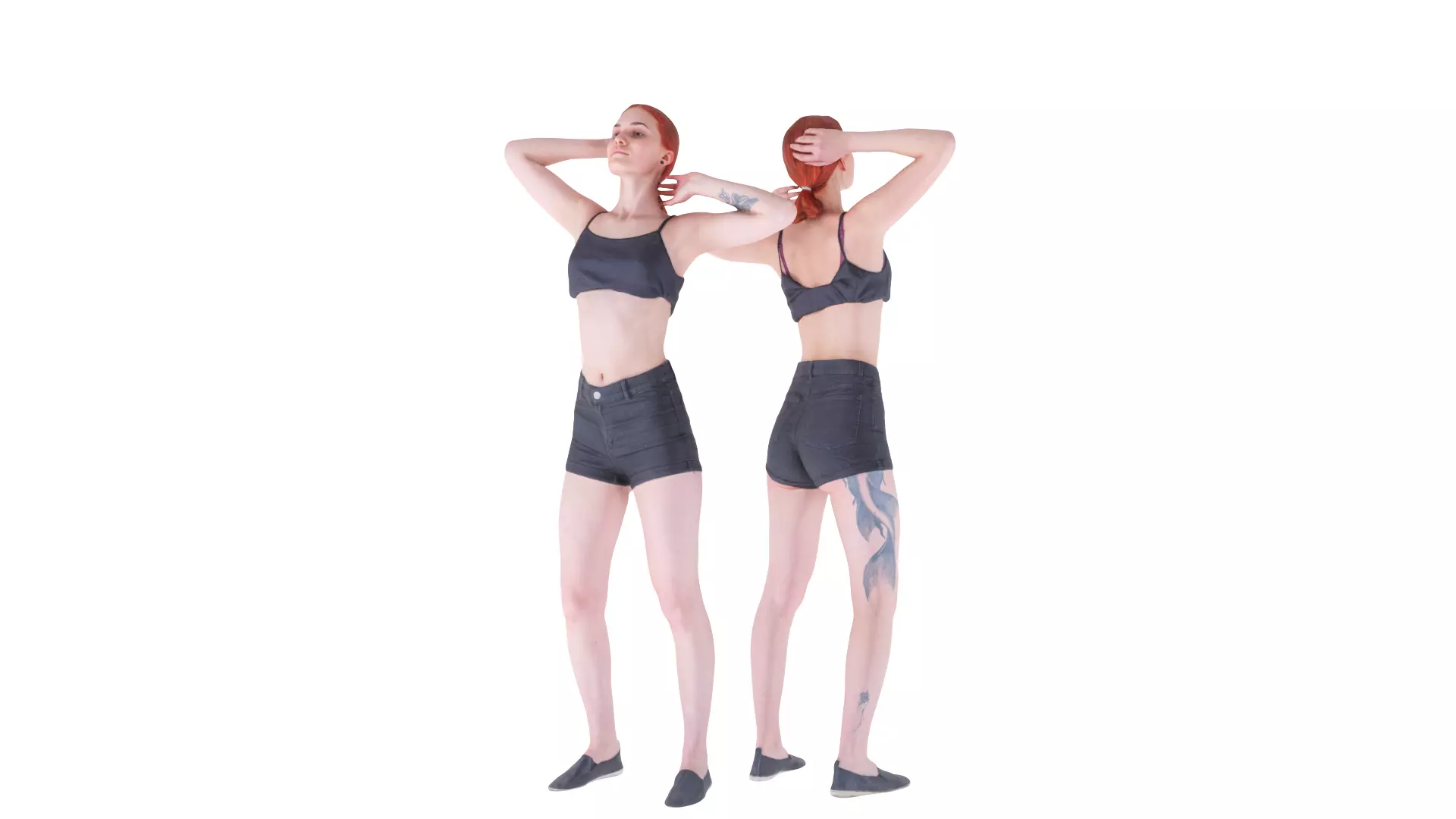 This is a true human size and detailed model of a sporty beautiful young woman of Caucasian appearance. The model is captured in casual pose to be perfectly matching for variety of architectural visualizations, e.g. sport ground, gym, beach, etc. The product is ready for immediate use in architectural visualisations, for further render and detailed sculpting in Zbrush.
