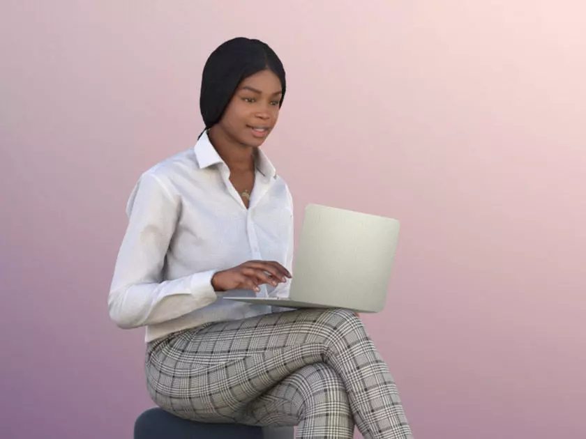 Micaela 11409 - Sitting Black Girl Woman With Laptop Netbook 3D model