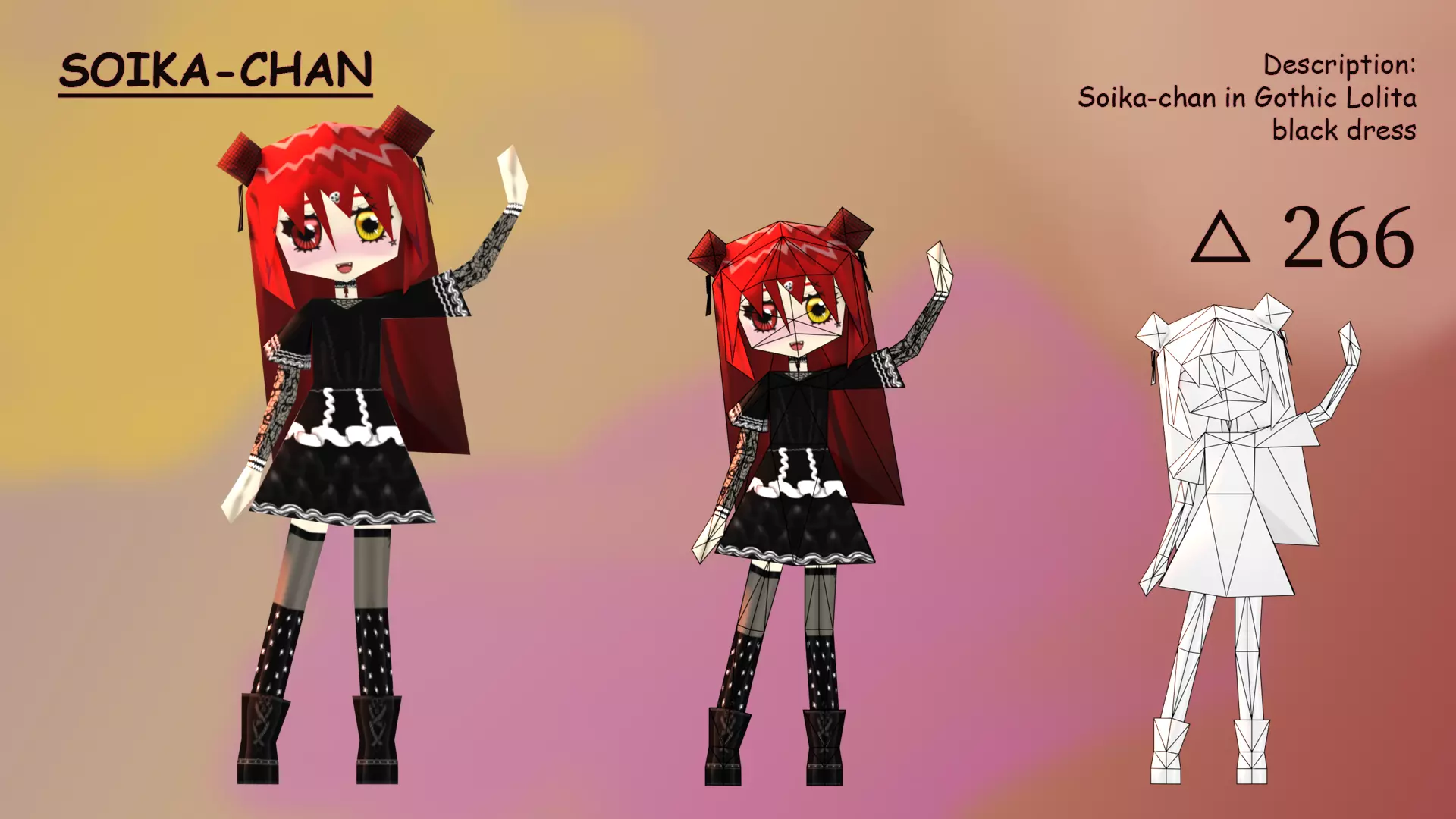 Soika-chan Low poly 3D Anime Model Triangles Gothic Lolita Low-poly 3D model